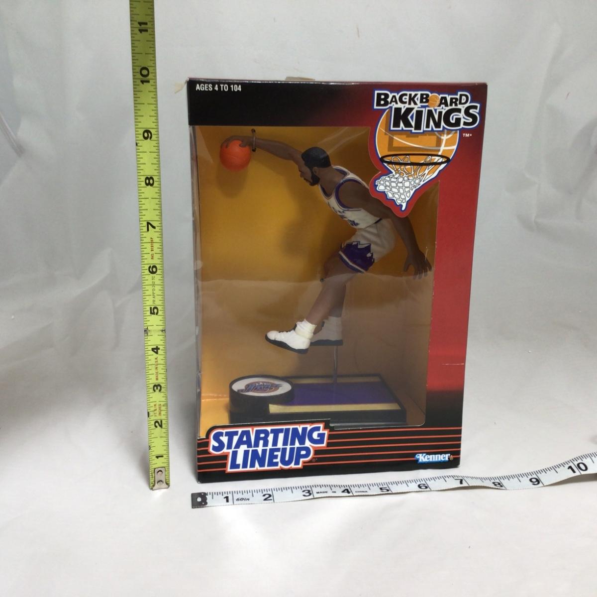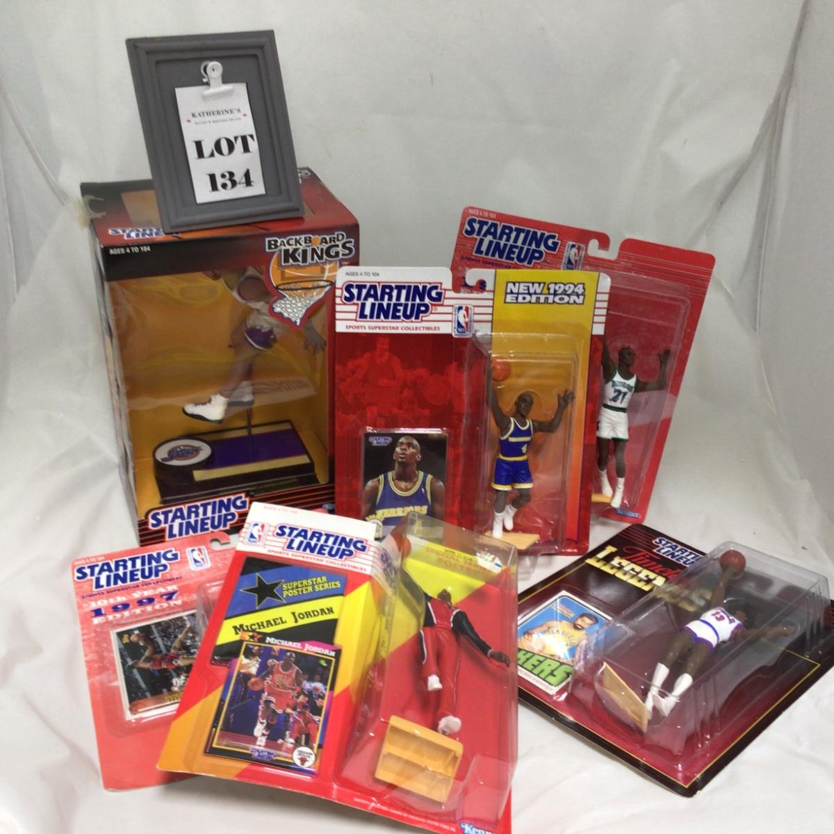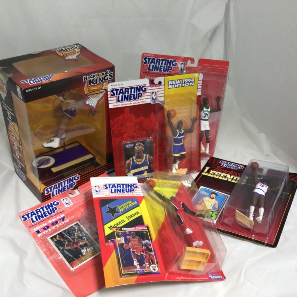 Mixed group of Starting Lineup well known basketball players. Players include Karl Malone, Kevin Garnett, Ennius Rodman, Wilt Chamberlain, and Michael Jordan. Please see photos for details and condition. ::: Shipping is available on this lot. If you require shipping you must let us know at the close of the auction. We will coordinate with you after the item has been won. Shipping fees will include insurance up to or exceeding the value of all items being mailed. If you have any questions regarding this lot please contact the auctioneer either via this website, by direct email or by phone. PICK UP TIMES and other important information can be found in the TERMS and DESCRIPTION of the auction. Please take a look for pertinent information. Thanks!