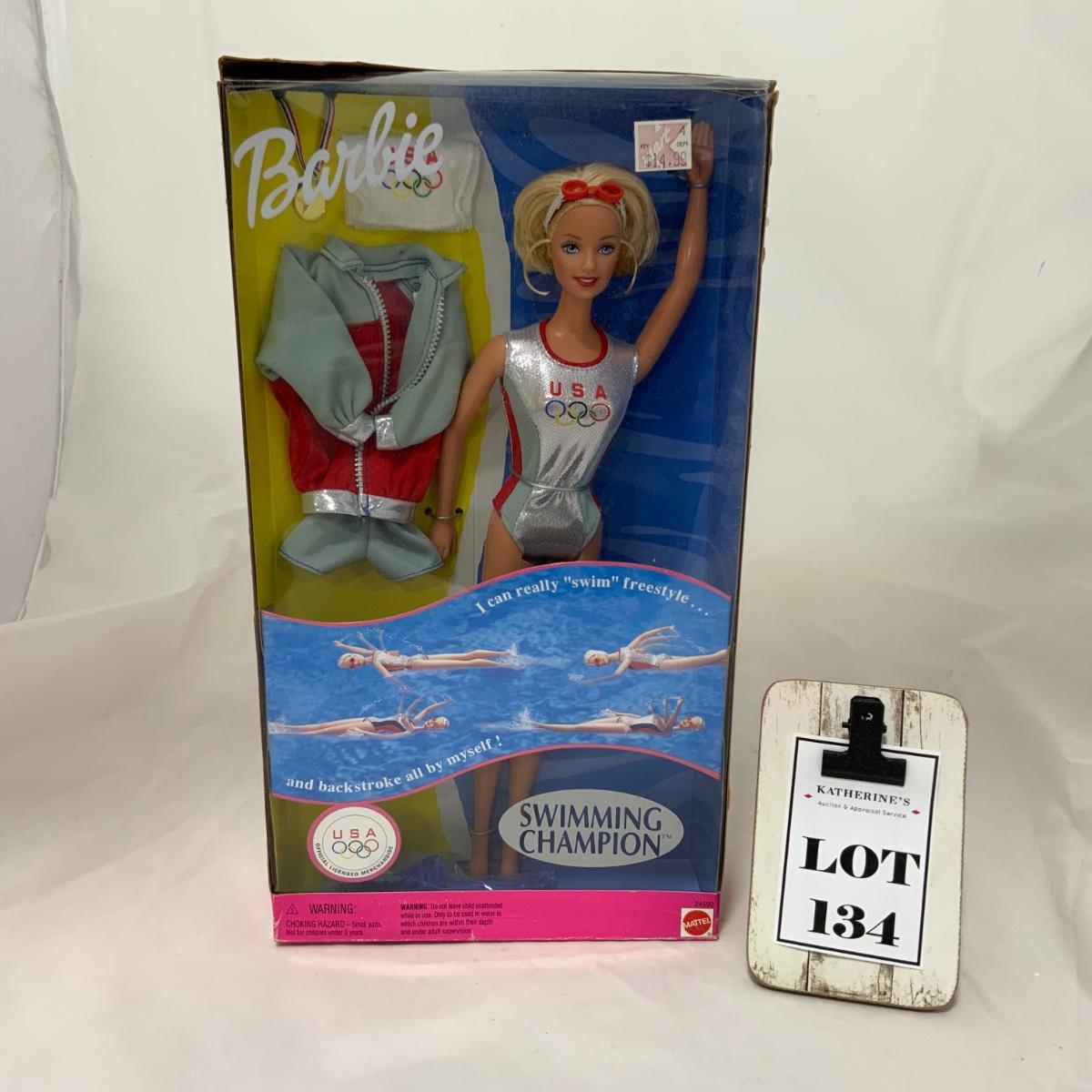 Swimming Champion Barbie is headed to the Olympics. Produced in 1999 by Mattel. She’s got real swimming action too - if you decide to take her out of the box. Please see photos for details and condition. !!! Proceeds from this auction will be donated to the NEW COMMUNITY SHELTER in Green Bay, Wisconsin. Please see Sale Description to the Left for more information. !!! ::: Shipping is available on this lot. If you require shipping you must let us know at the close of the auction. We will coordinate with you after the item has been won. Shipping fees will include insurance up to or exceeding the value of all items being mailed. If you have any questions regarding this lot please contact the auctioneer either via this website, by direct email or by phone. PICK UP TIMES and other important information can be found in the TERMS and DESCRIPTION of the auction. Please take a look for pertinent information. Thanks!