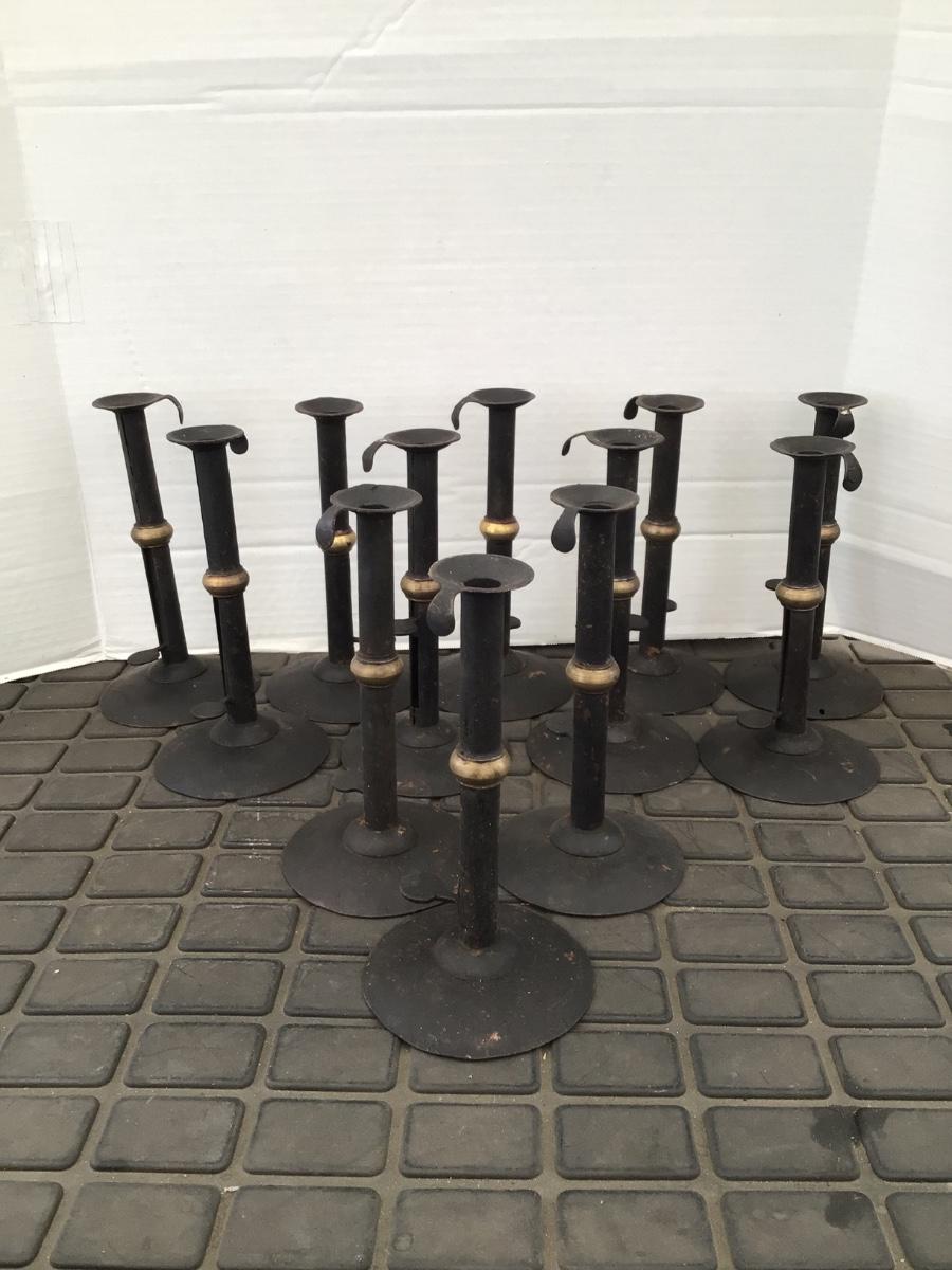 134. Twelve Vintage Wedding Band Hog Scraper Candlesticks