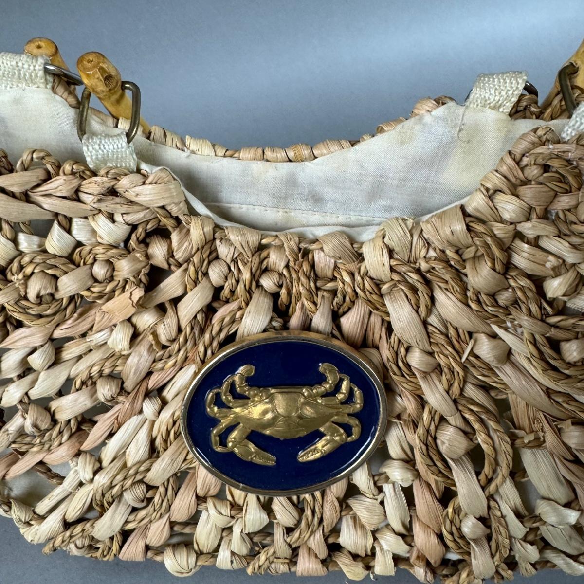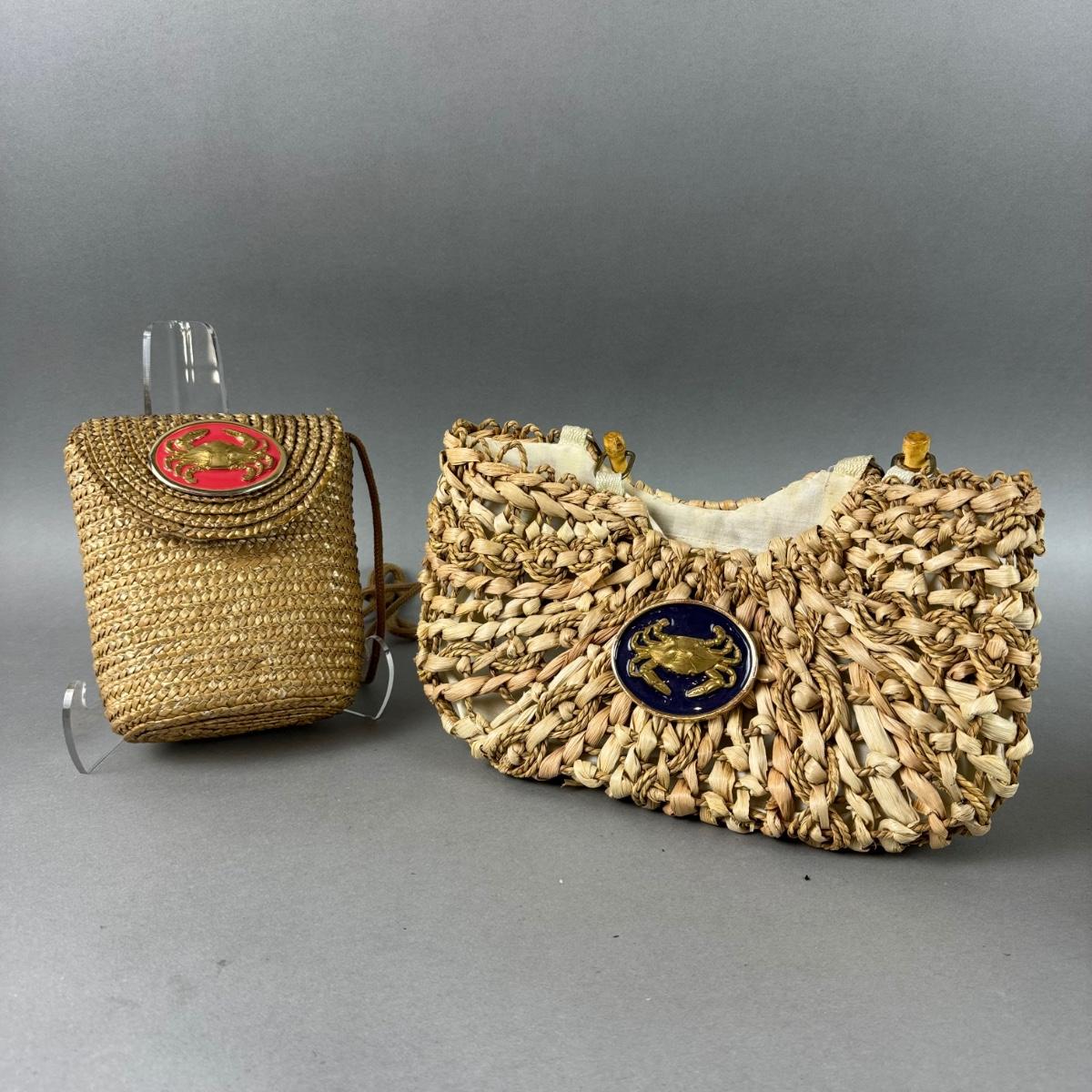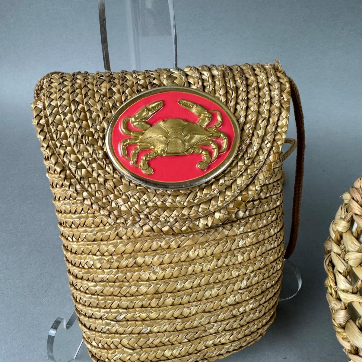 There are 2 straw purses in this lot and one has a crab embellishment. Crab purse is 12" x 7", the red crab is 6" x 8".