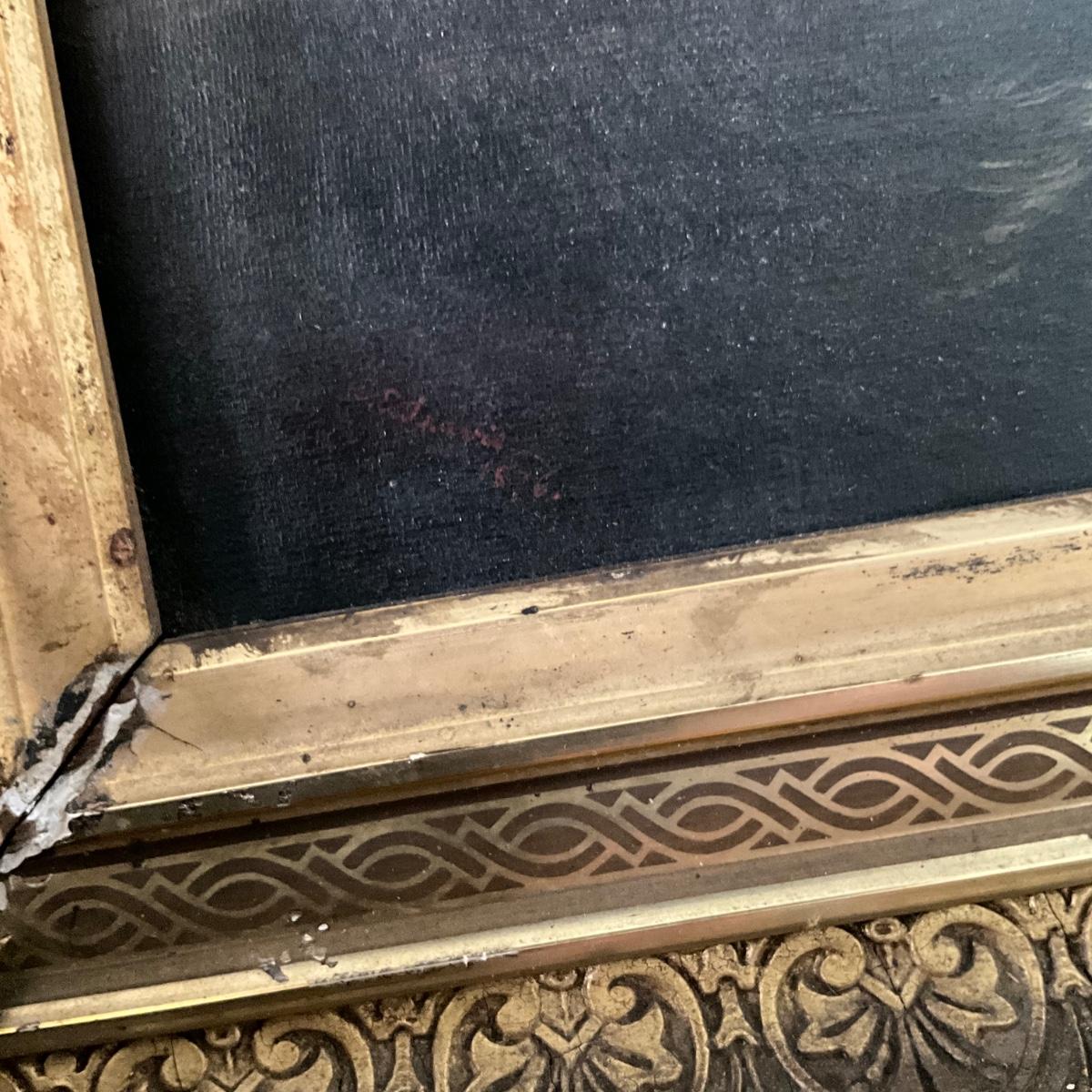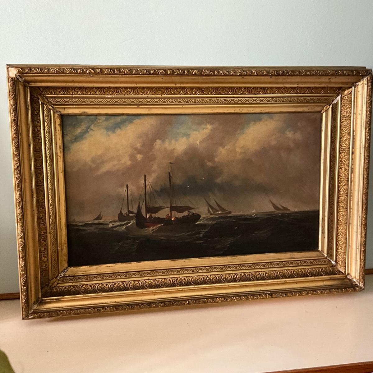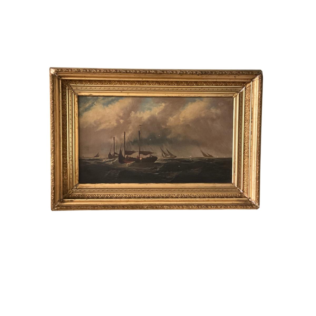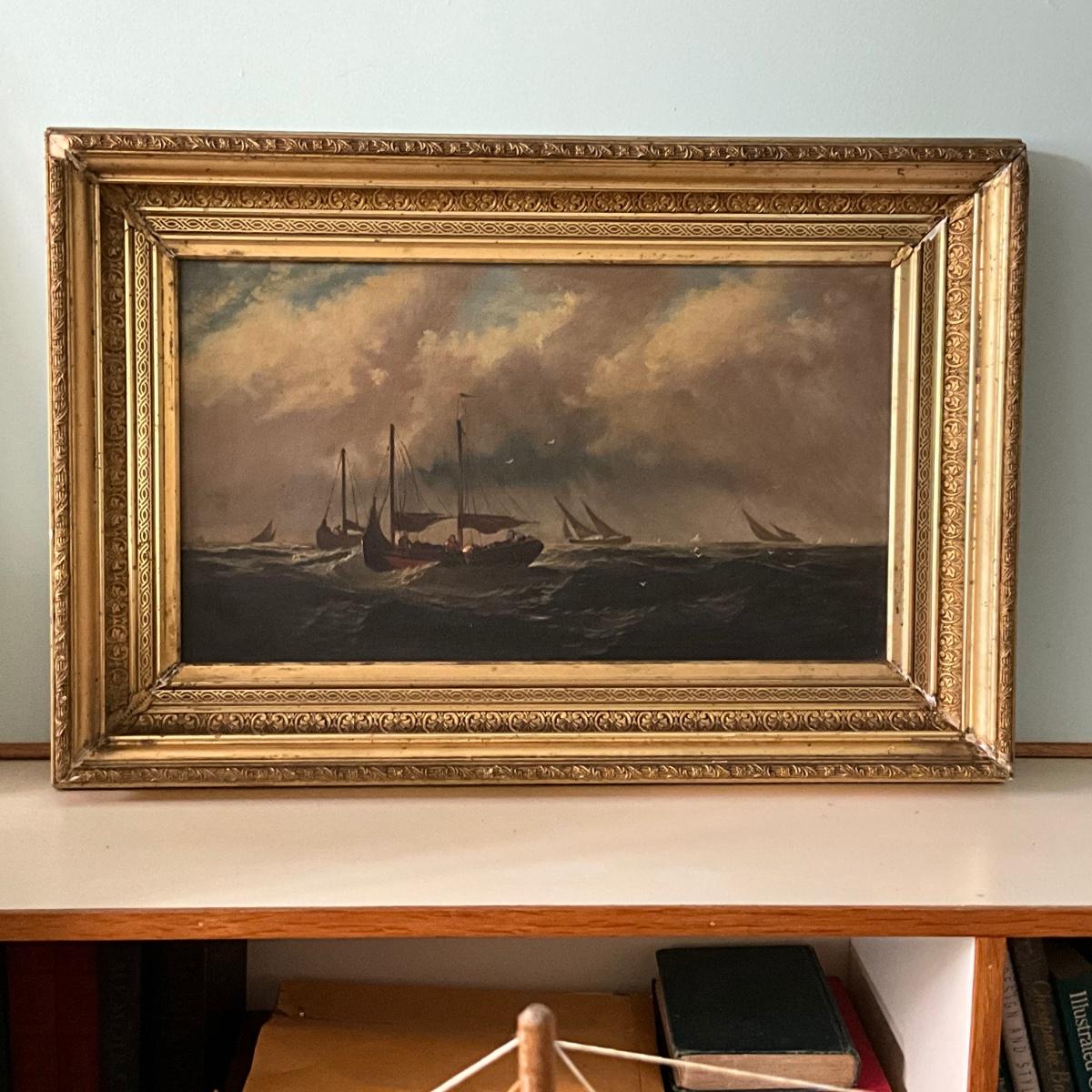 1345 Antique Maritime Ship Oil Painting