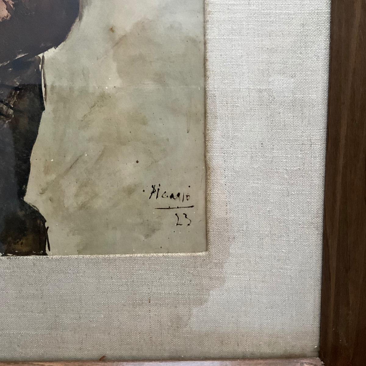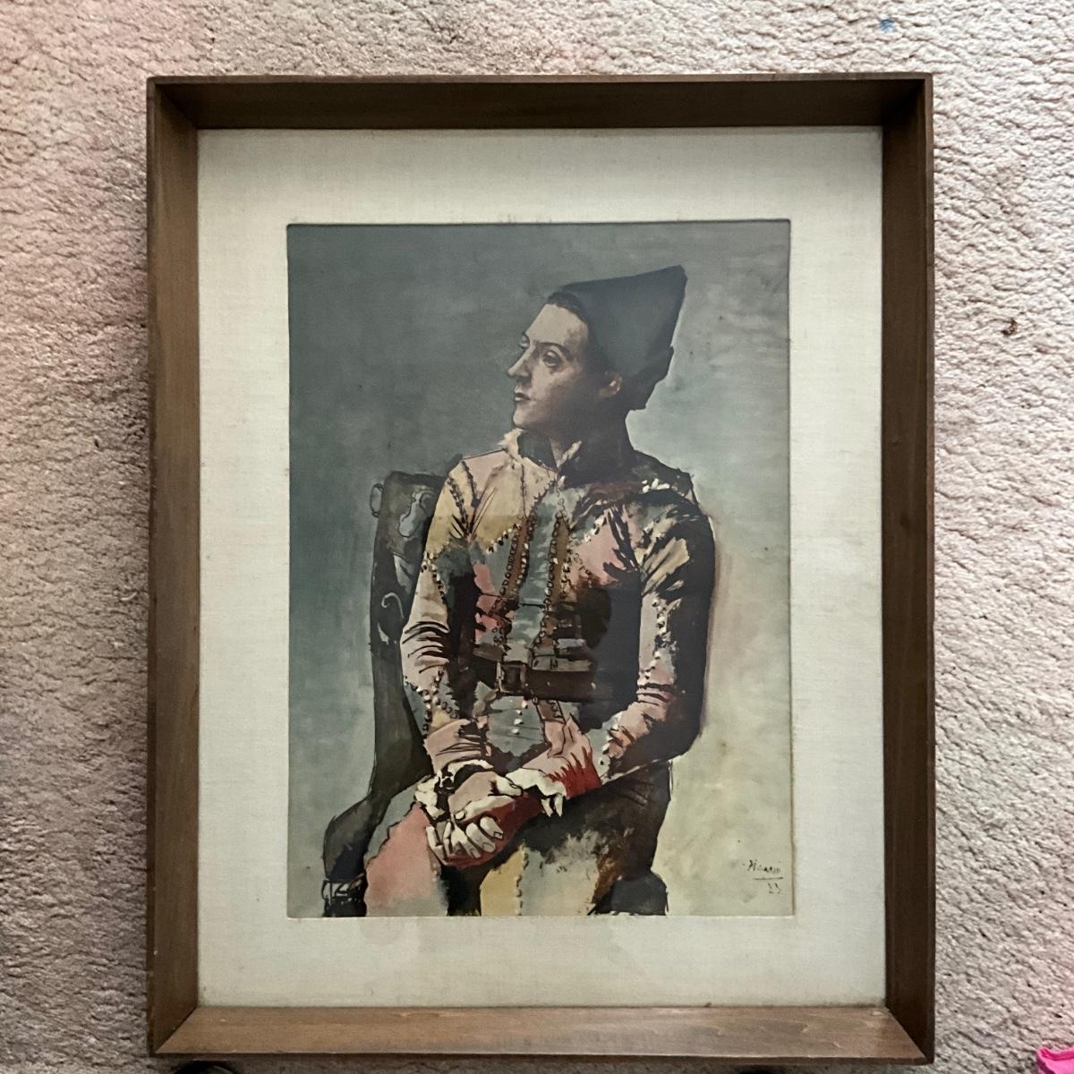 1346 1940's Seated Harlequin 1923 after Picasso Print in Beveled Frame