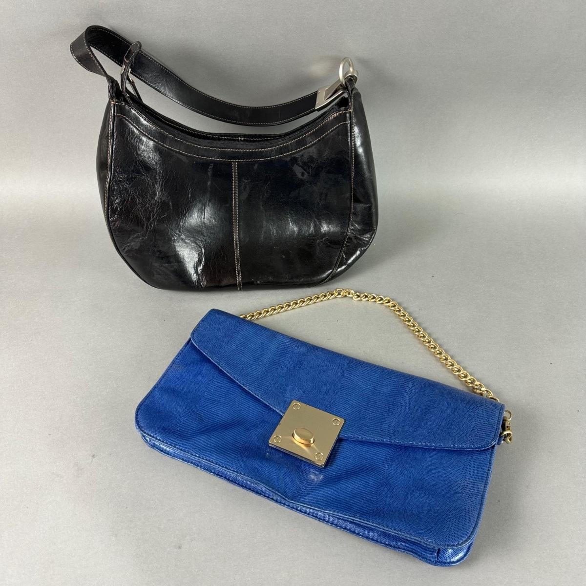 There are 2 purses in this lot, Kenneth Cole and Kate Landry. Black bag measures 13" x 10" and the blue bag is 14" x 7.5".