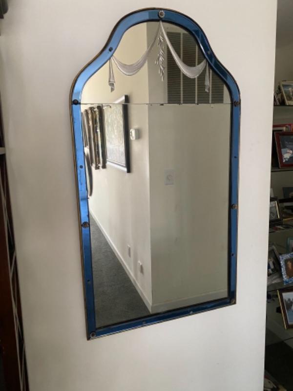 135 Antique Art Deco Blue Glass Frame with Etched top Mirror