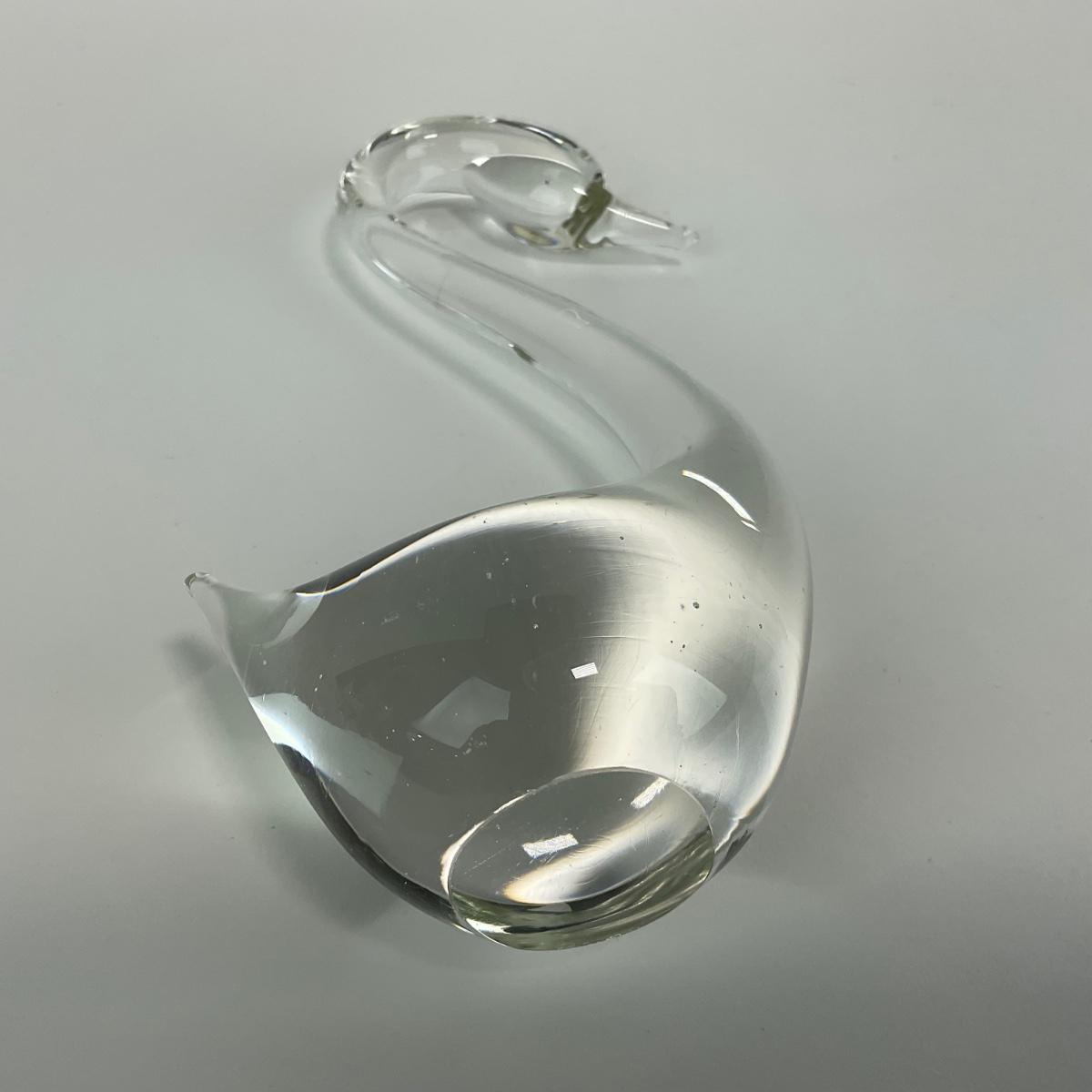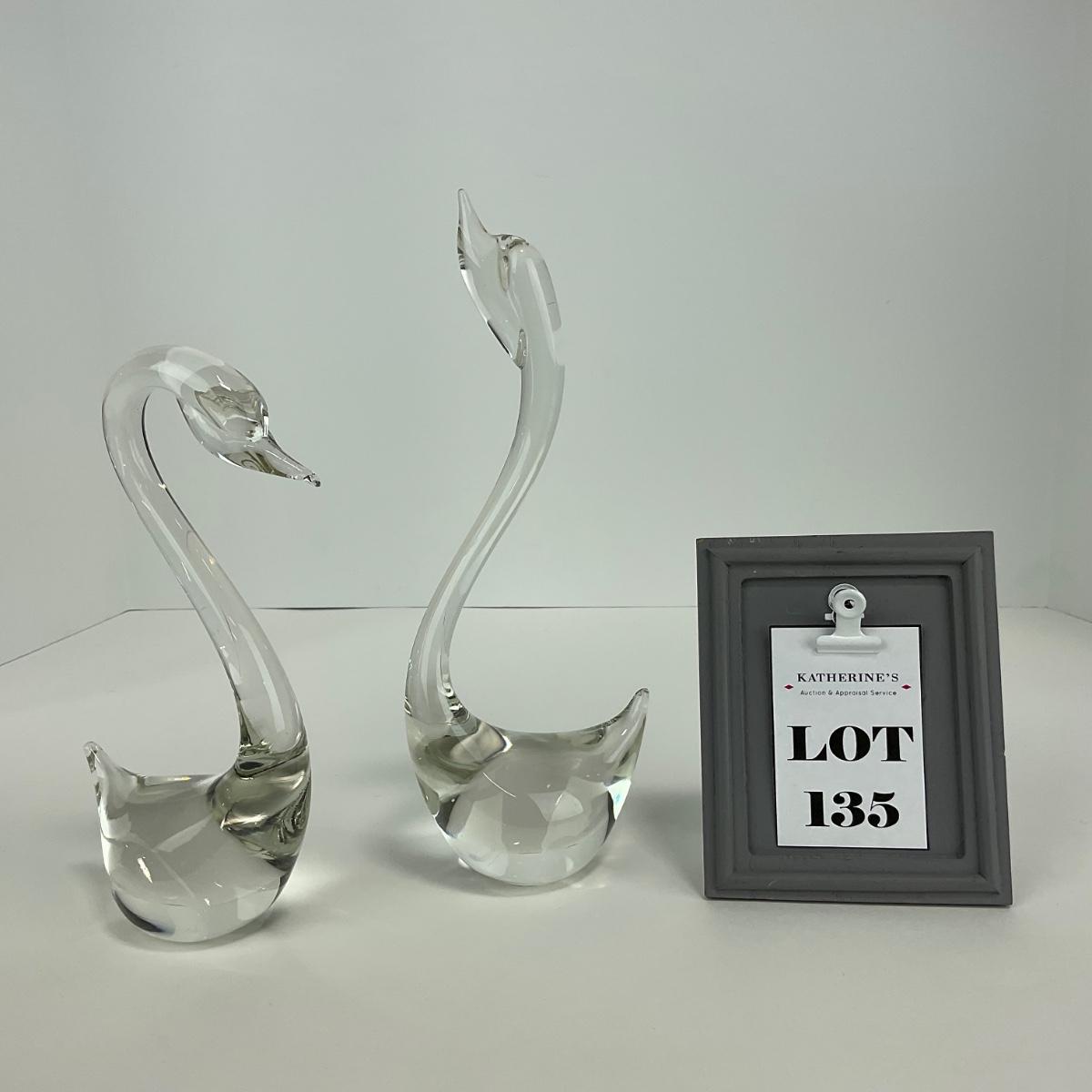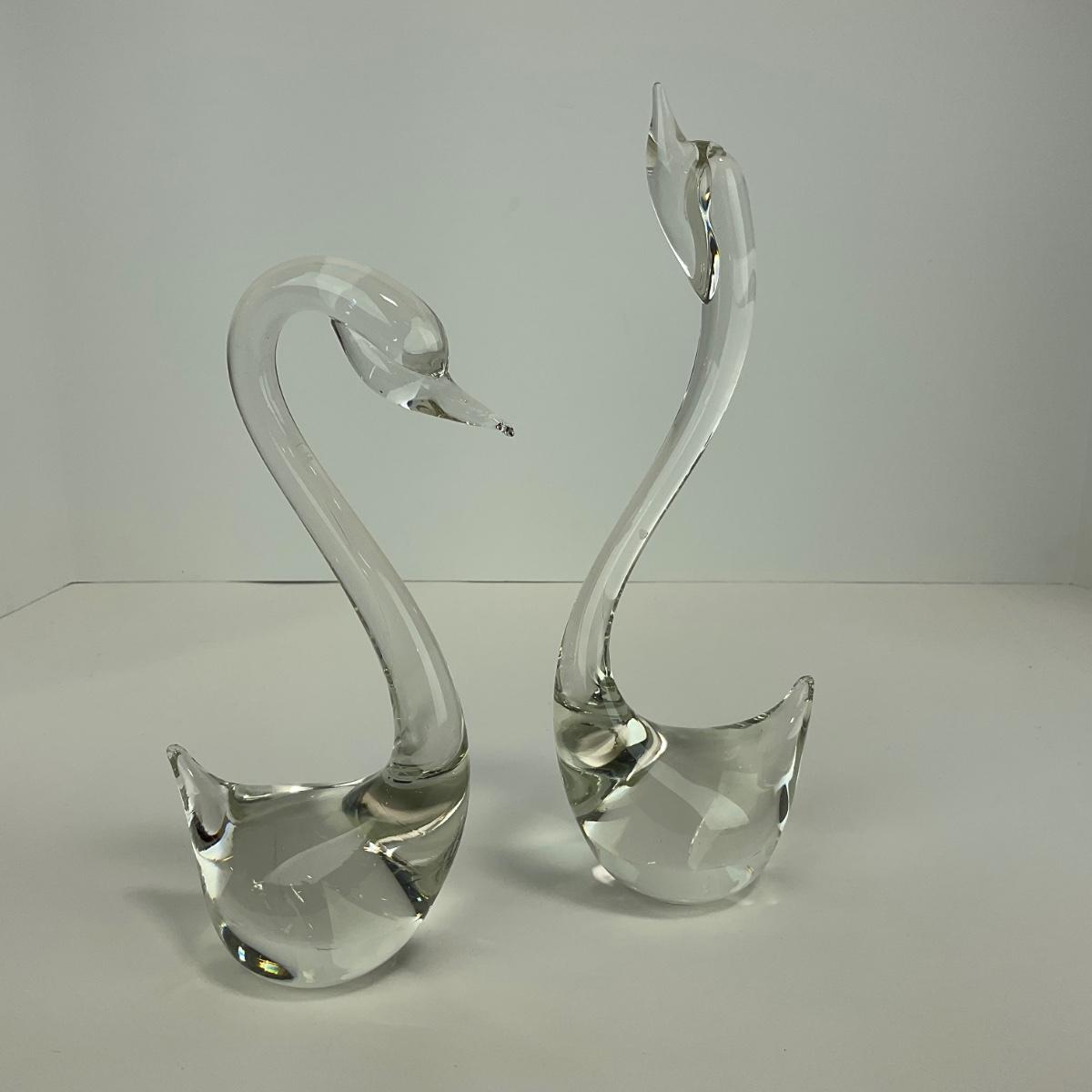 -135- ART GLASS | Clear Glass Mid Century Swan Figures