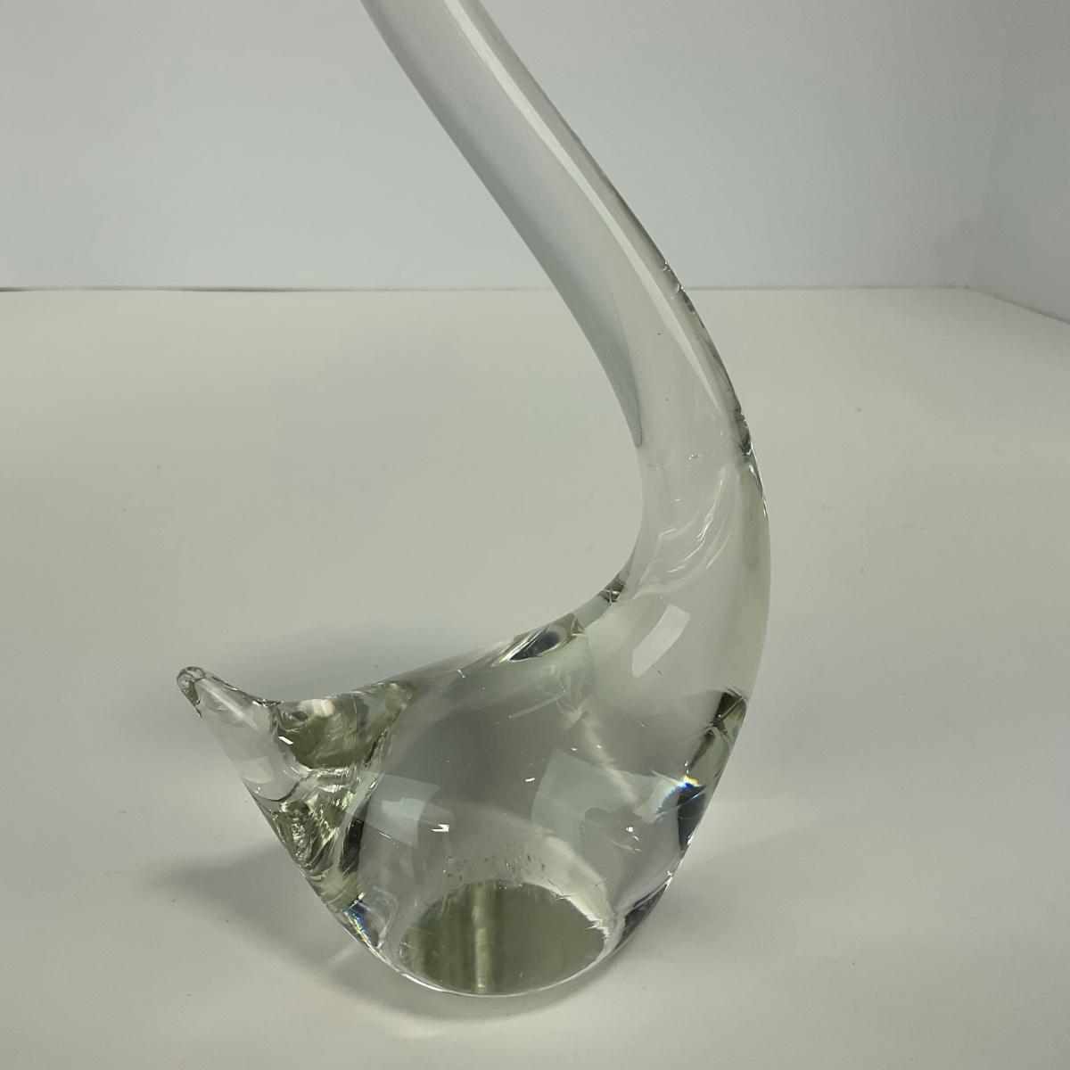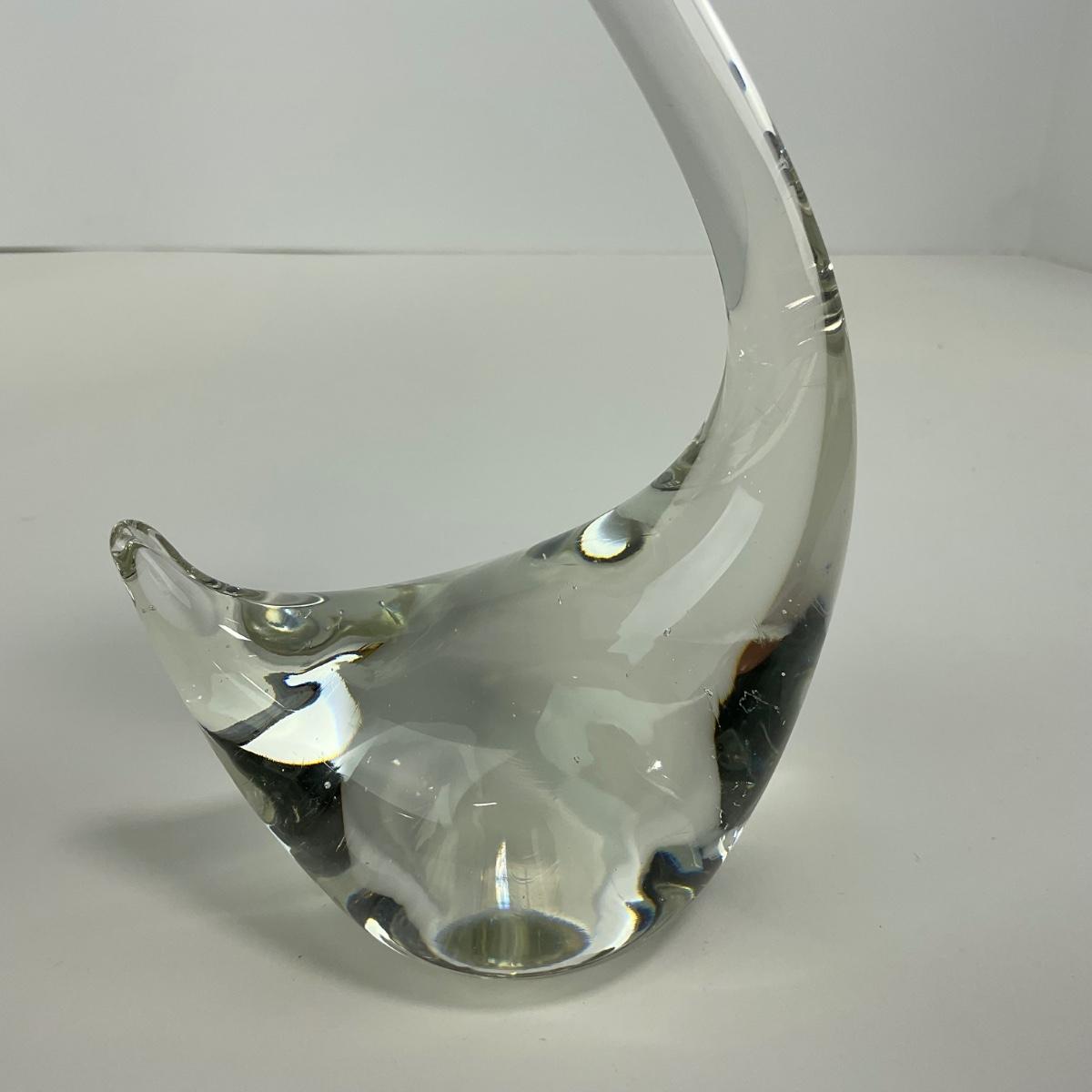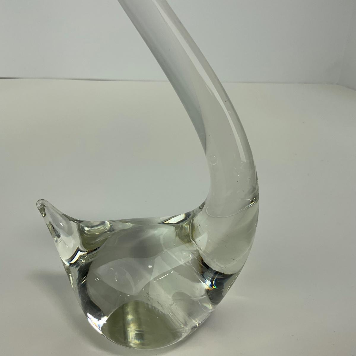 -135- ART GLASS | Clear Glass Mid Century Swan Figures