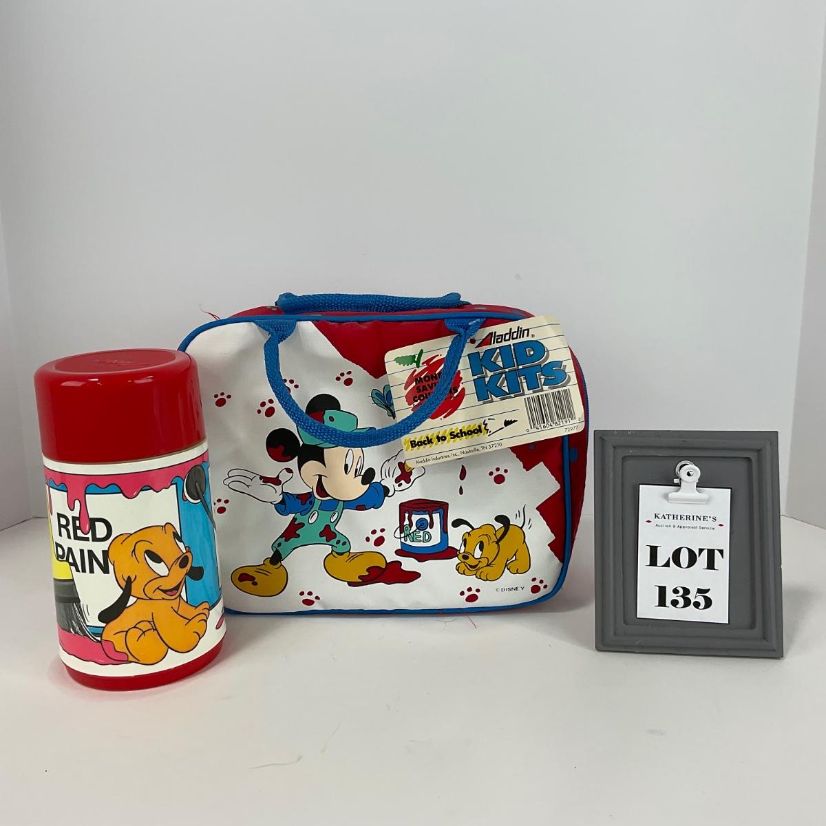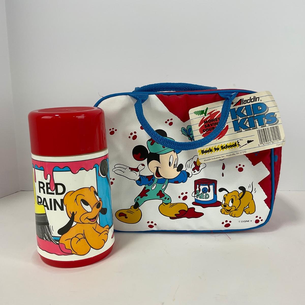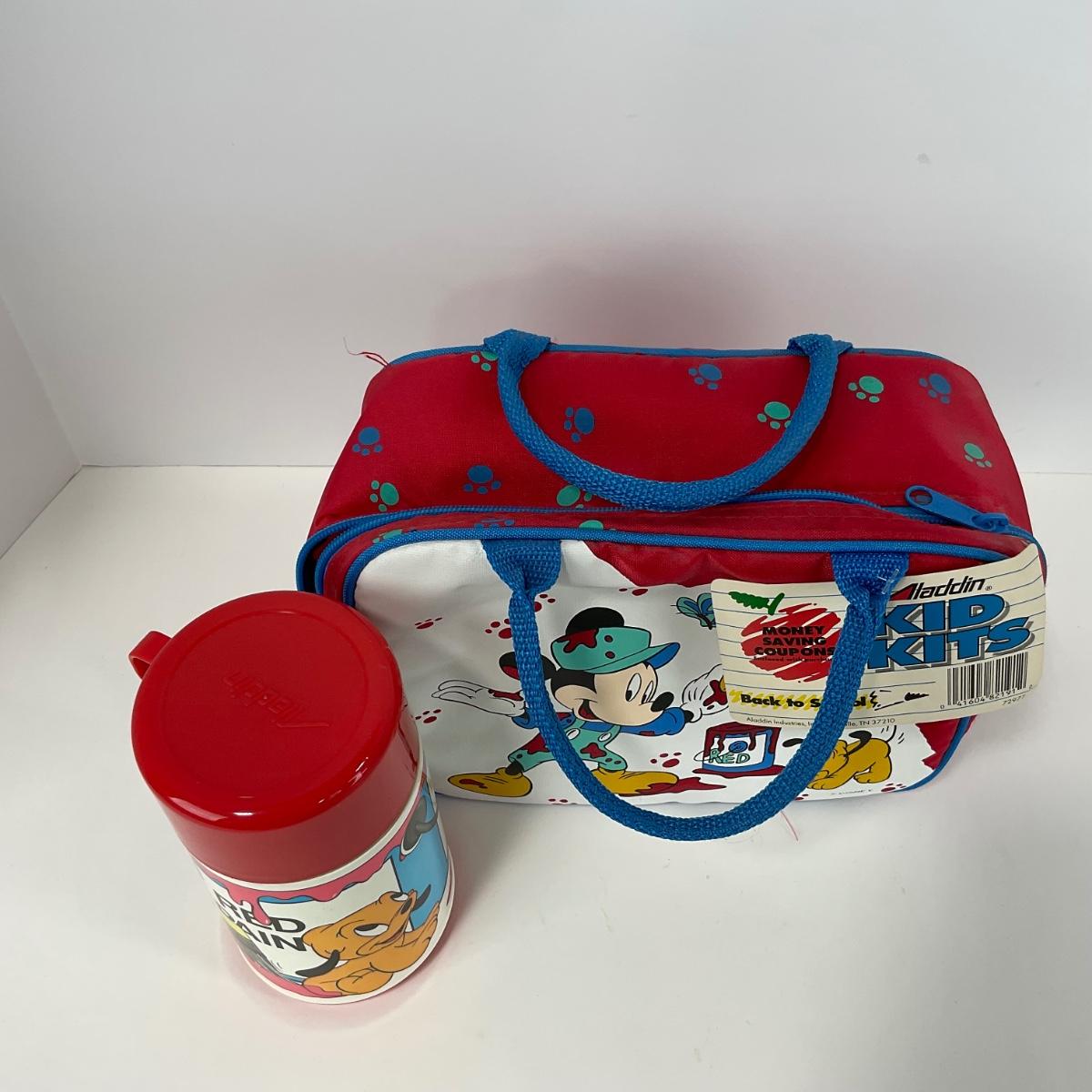-135- COLLECTIBLE | Vintage Mickey Mouse & Pluto Aladdin Insulated Lunch Bag & Thermos