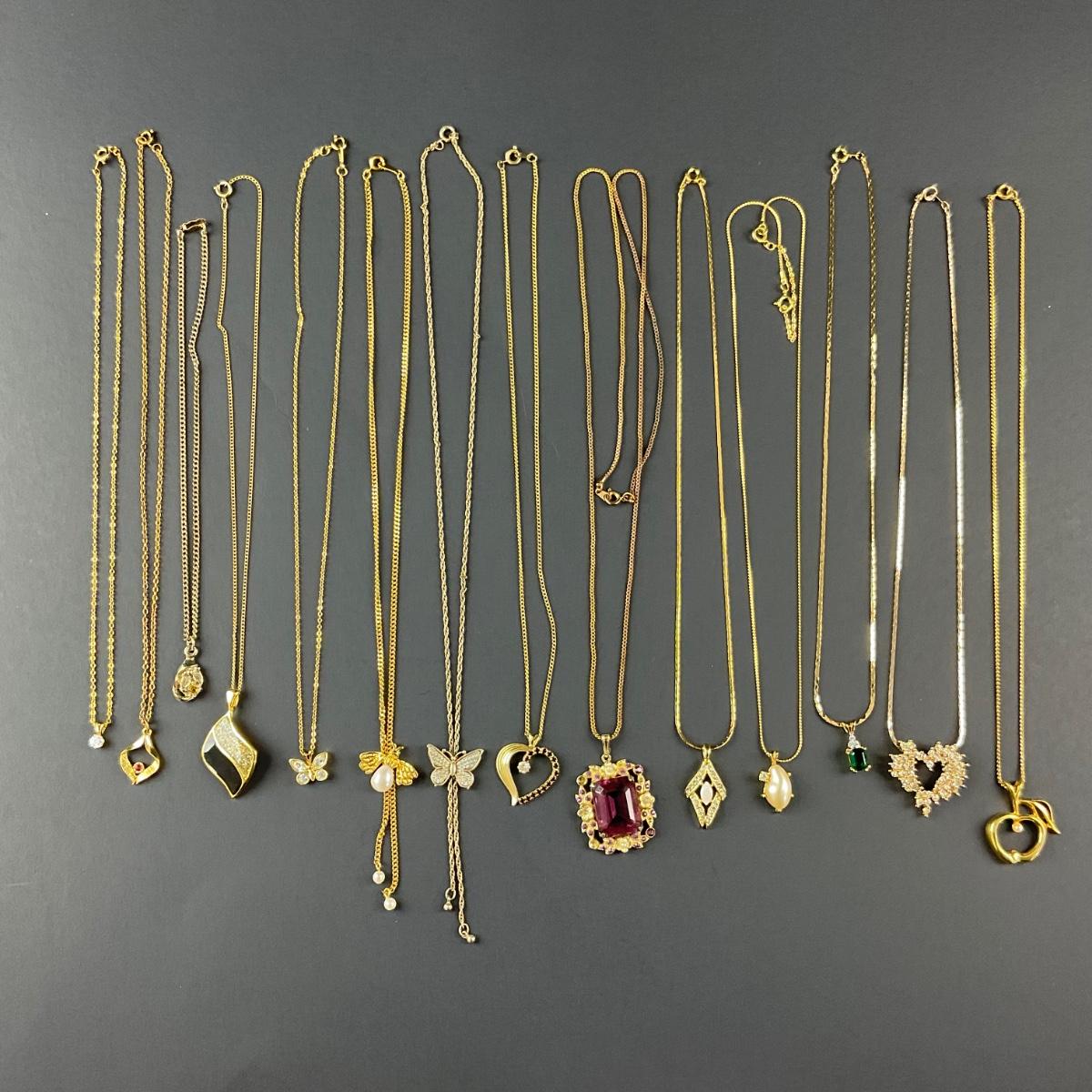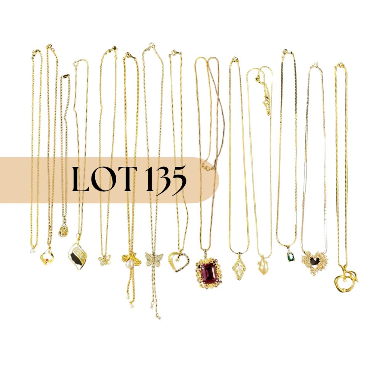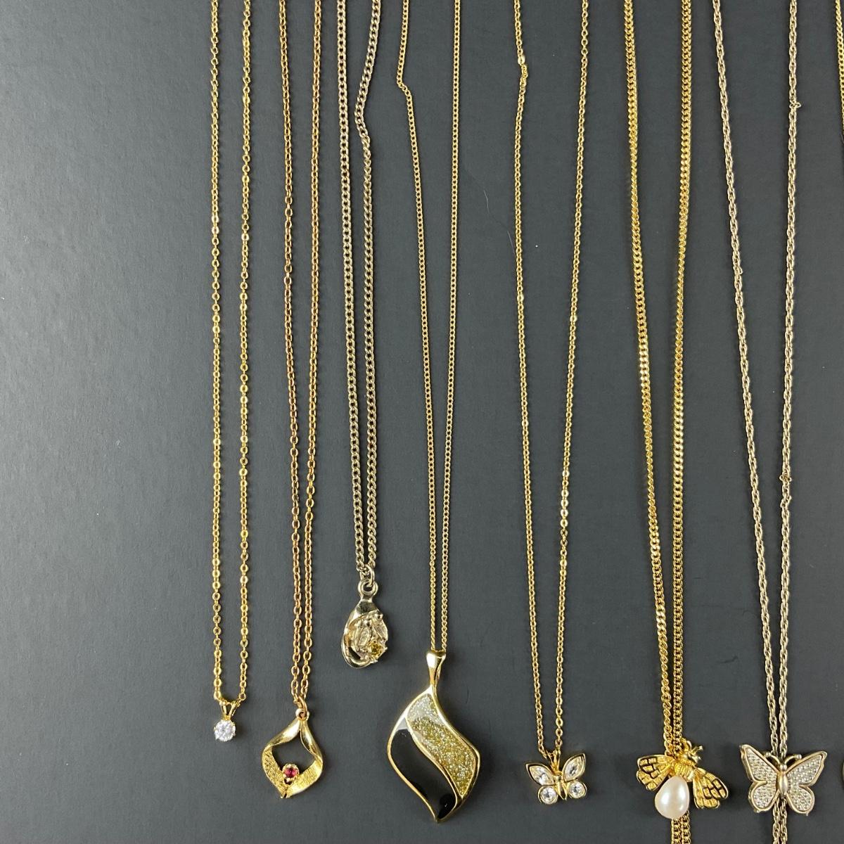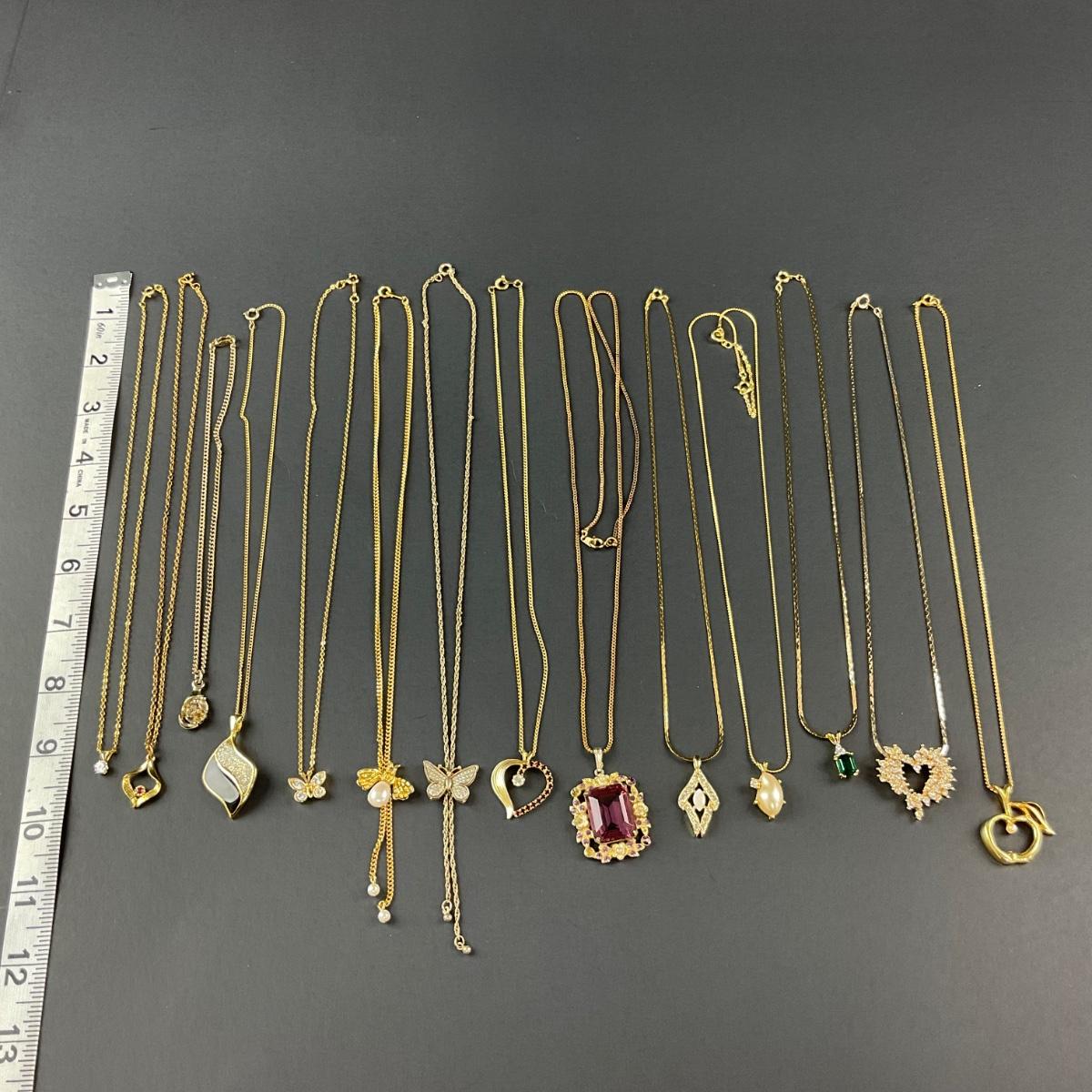-135- COSTUME JEWELRY | 14 Pieces Of Miscellaneous Gold Tone Necklaces