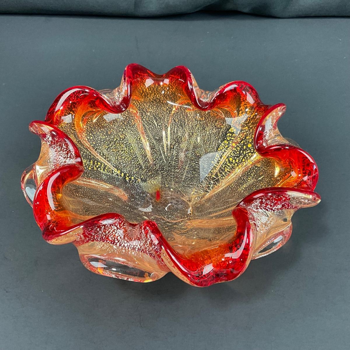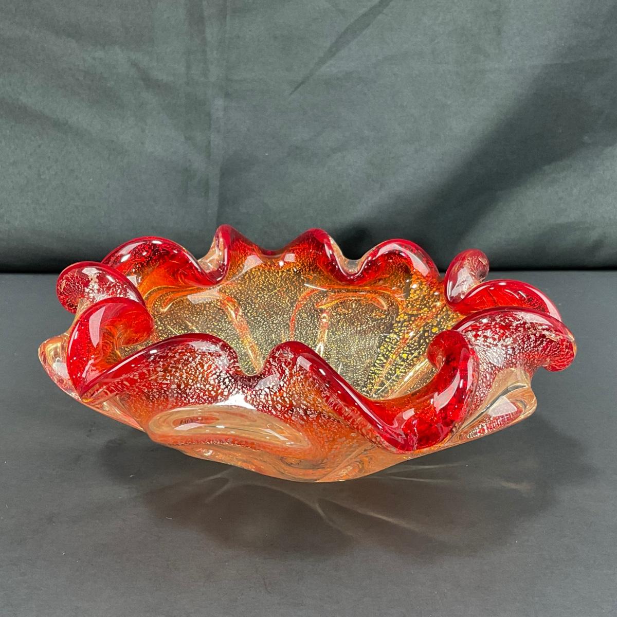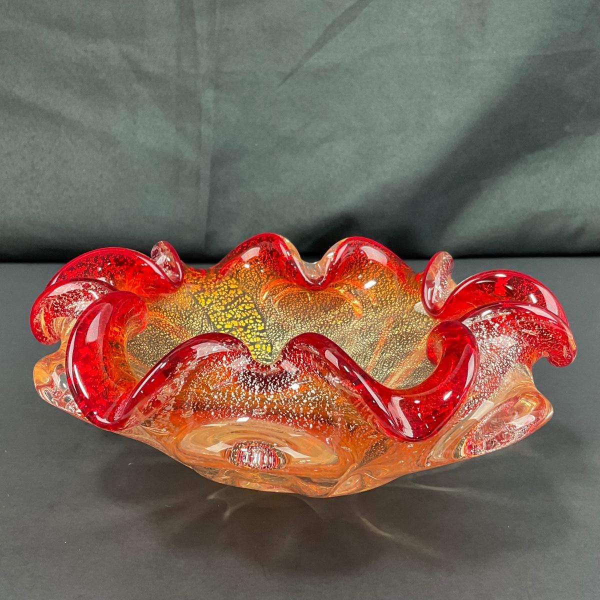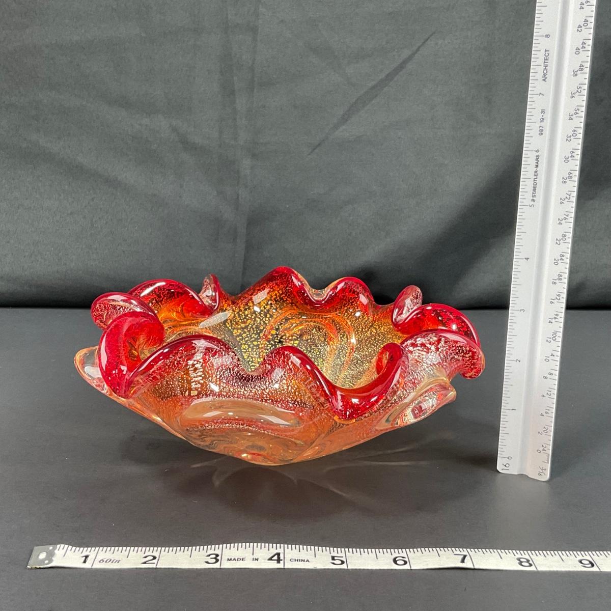 -135- GLASSWARE | Murano Red & Gold Glass Dish