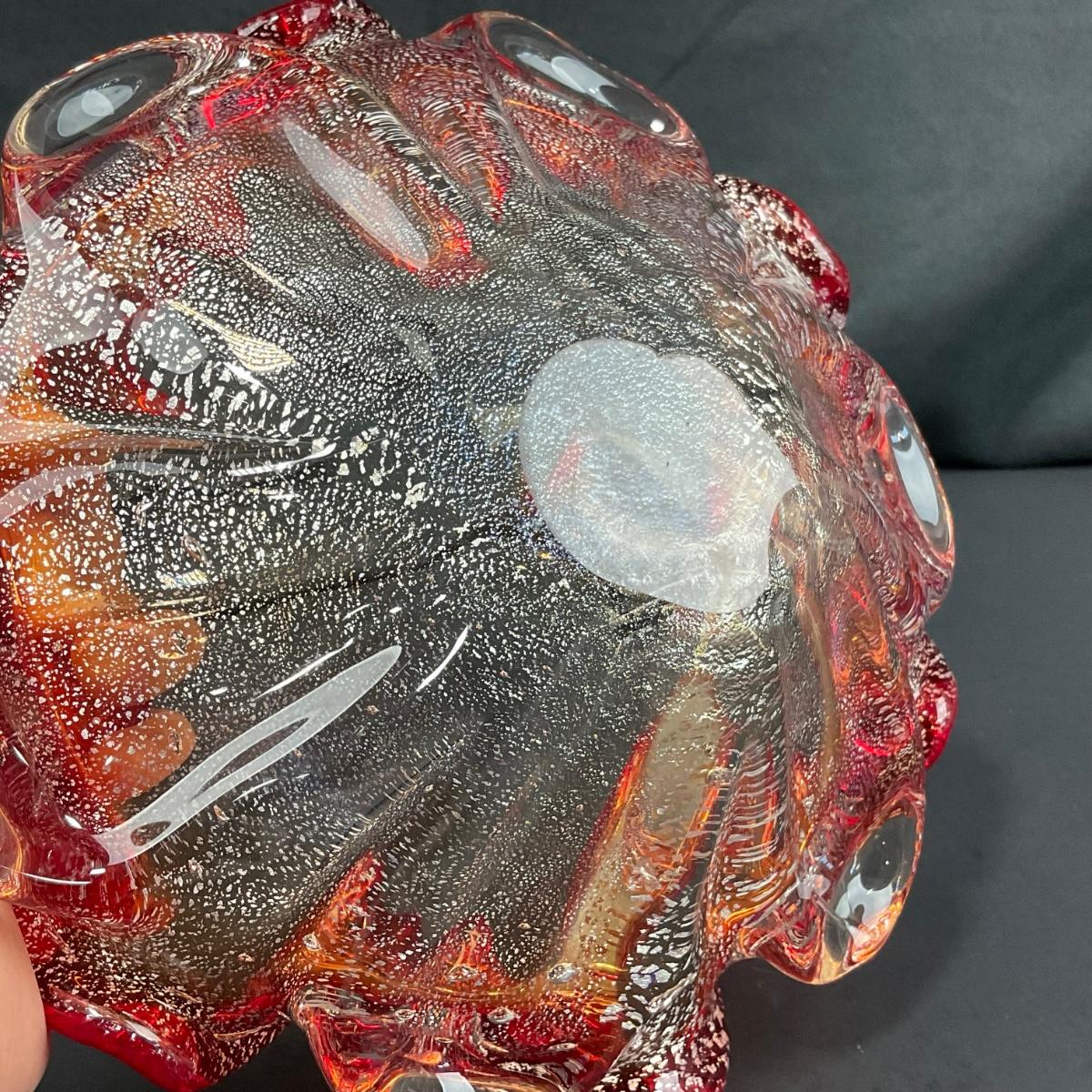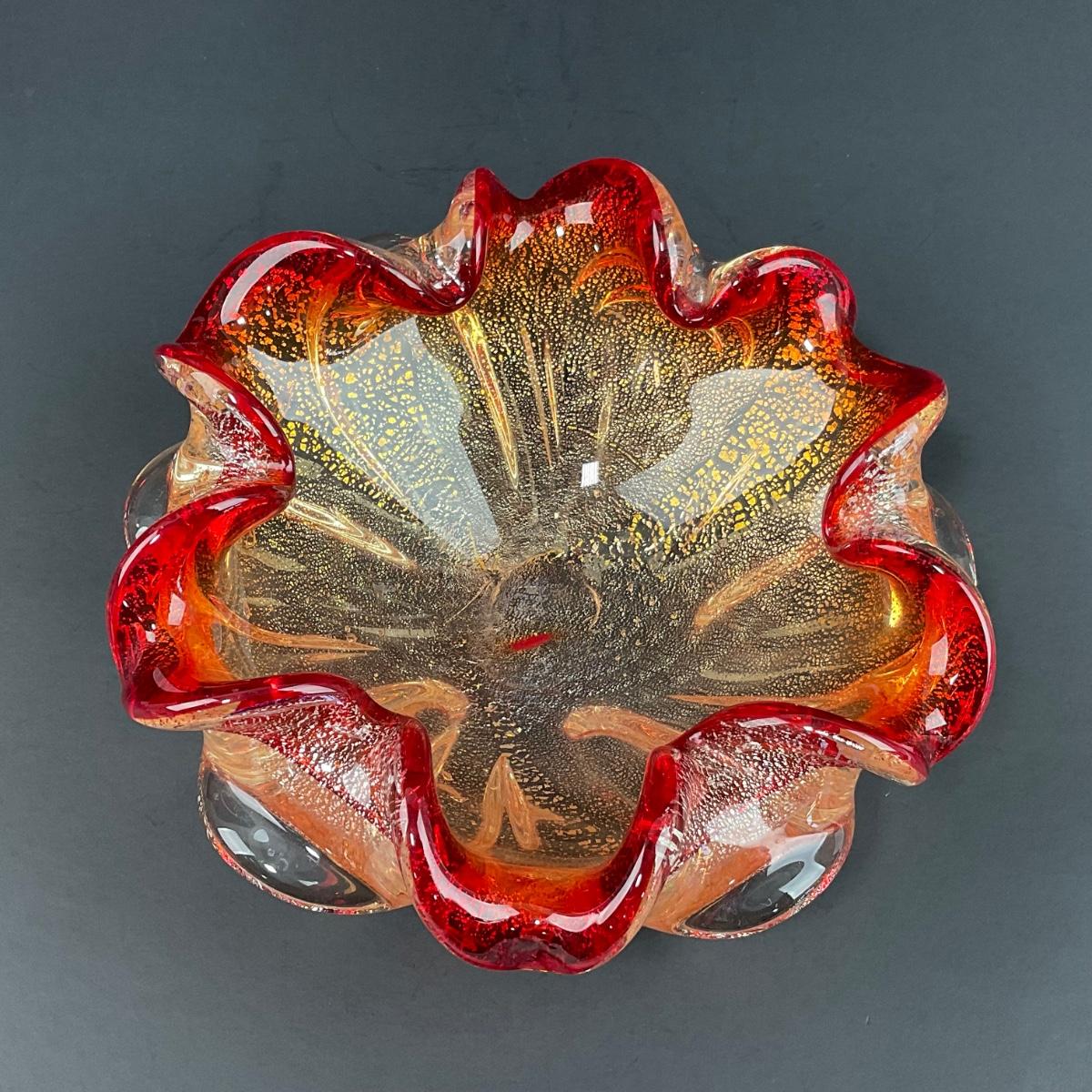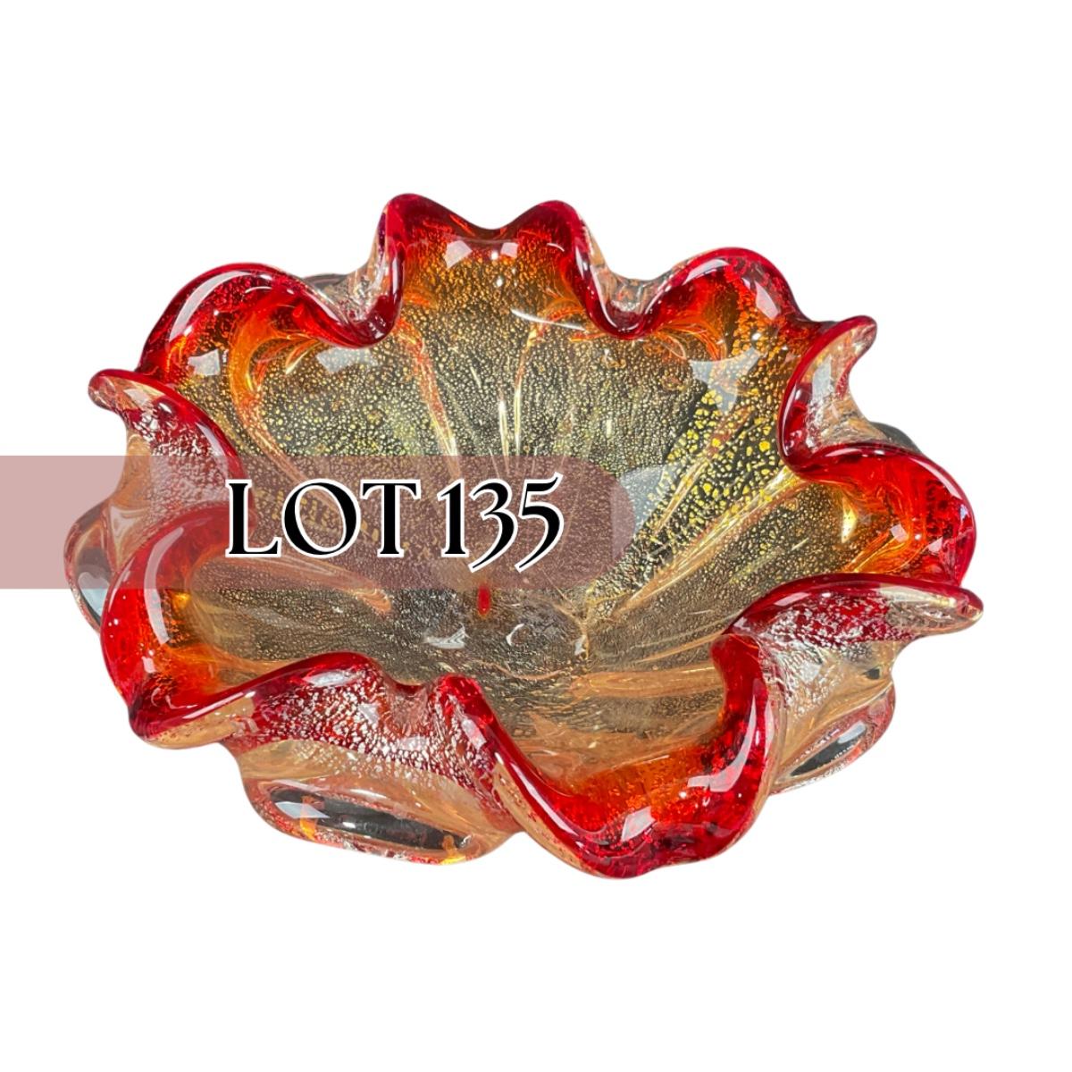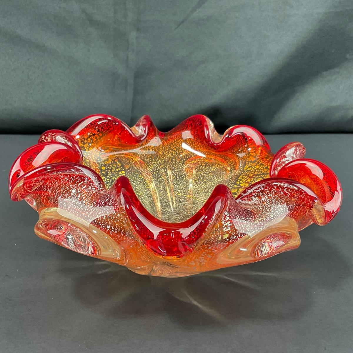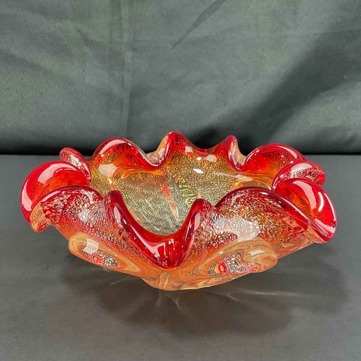 -135- GLASSWARE | Murano Red & Gold Glass Dish