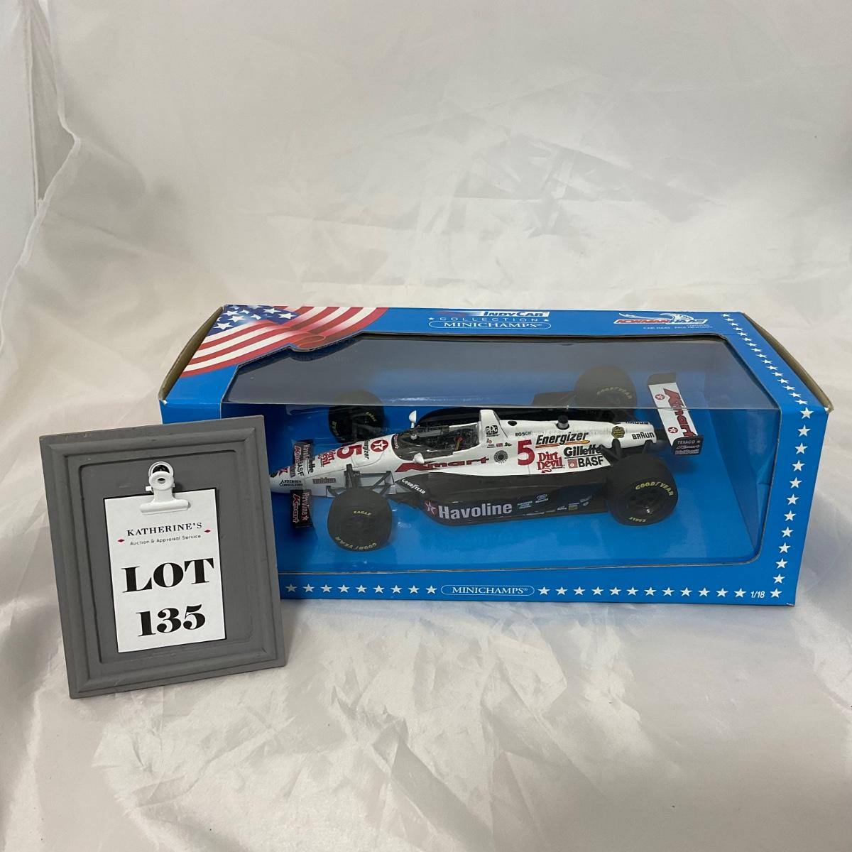 One Minichamps die cast 1:18 scale Havoline Kmart Energizer Indy Car in box. Please see photos for details and condition. ::: Shipping is available on this lot. If you require shipping you must let us know at the close of the auction. We will coordinate with you after the item has been won. Shipping fees will include insurance up to or exceeding the value of all items being mailed. If you have any questions regarding this lot please contact the auctioneer either via this website, by direct email or by phone. PICK UP TIMES and other important information can be found in the TERMS and DESCRIPTION of the auction. Please take a look for pertinent information. Thanks!