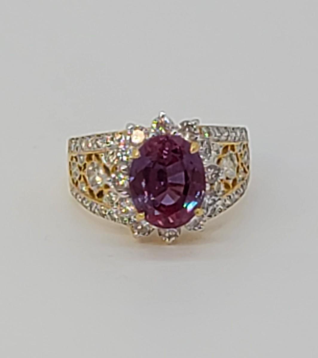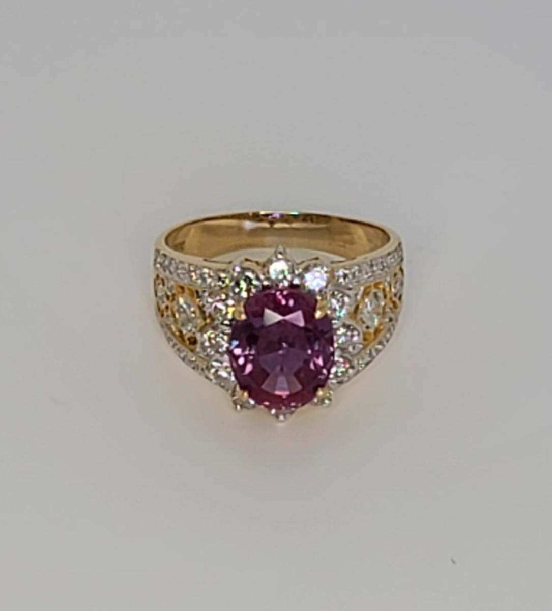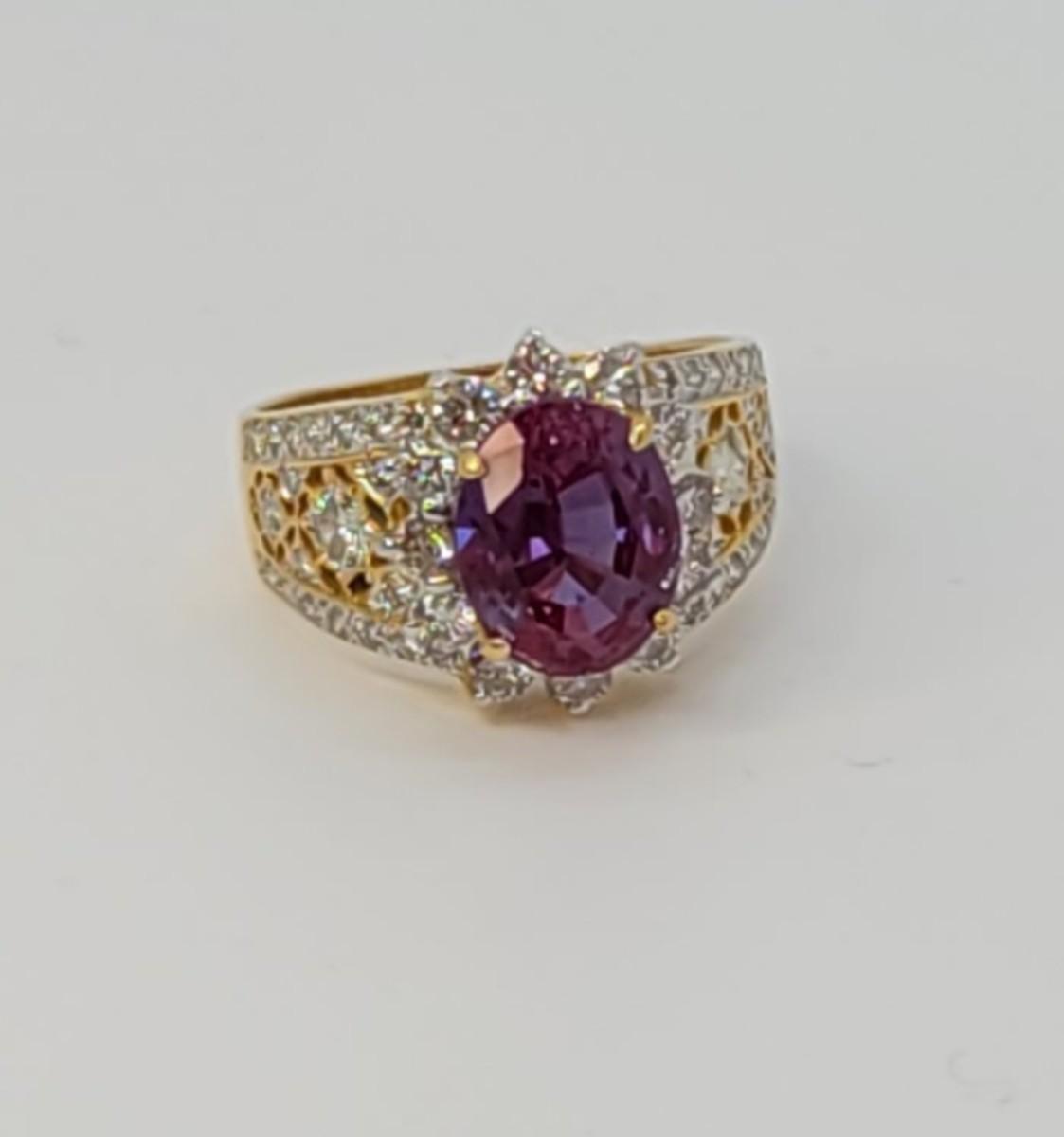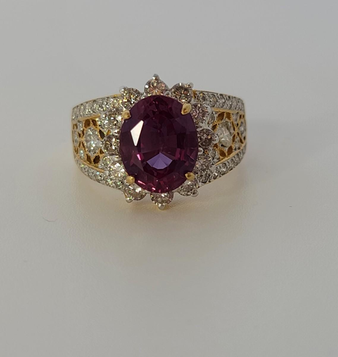 123: Size 7  6.9g 18k yellow gold ring Tanzanite covered in Diamonds