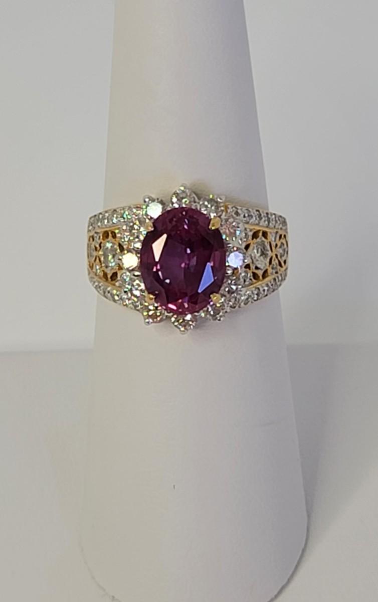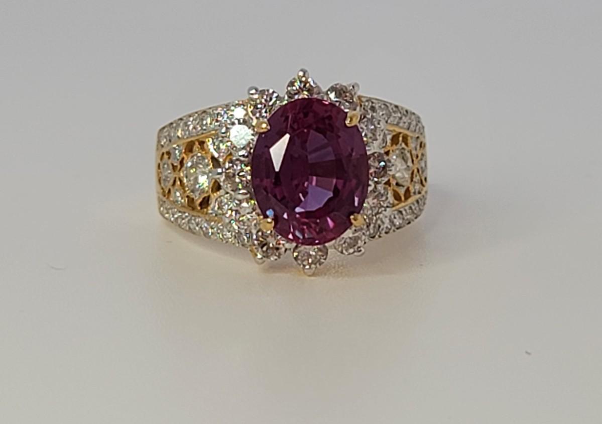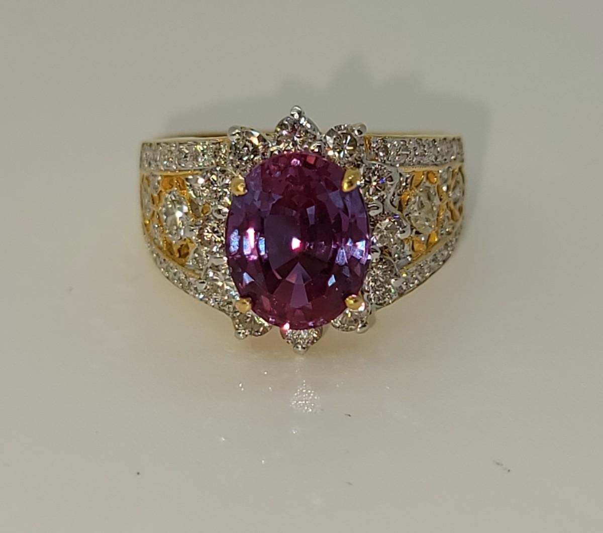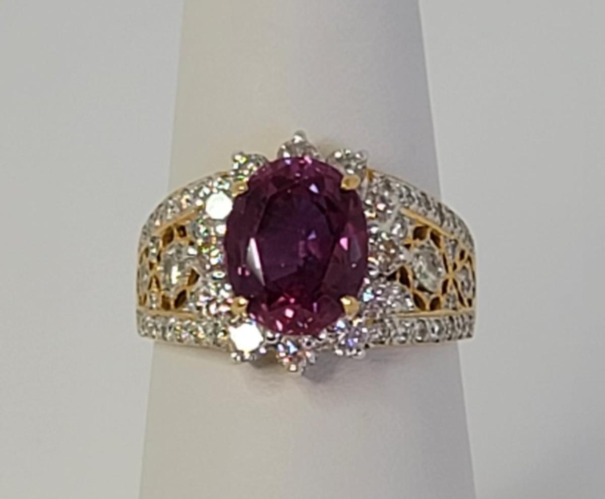 123: Size 7  6.9g 18k yellow gold ring Tanzanite covered in Diamonds
