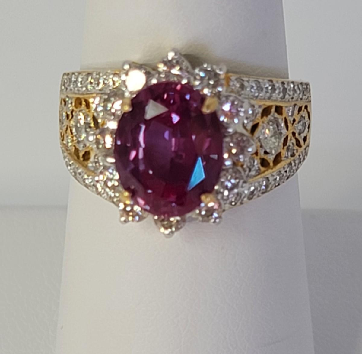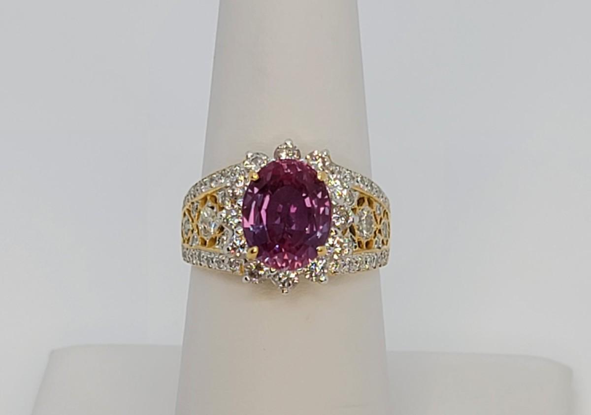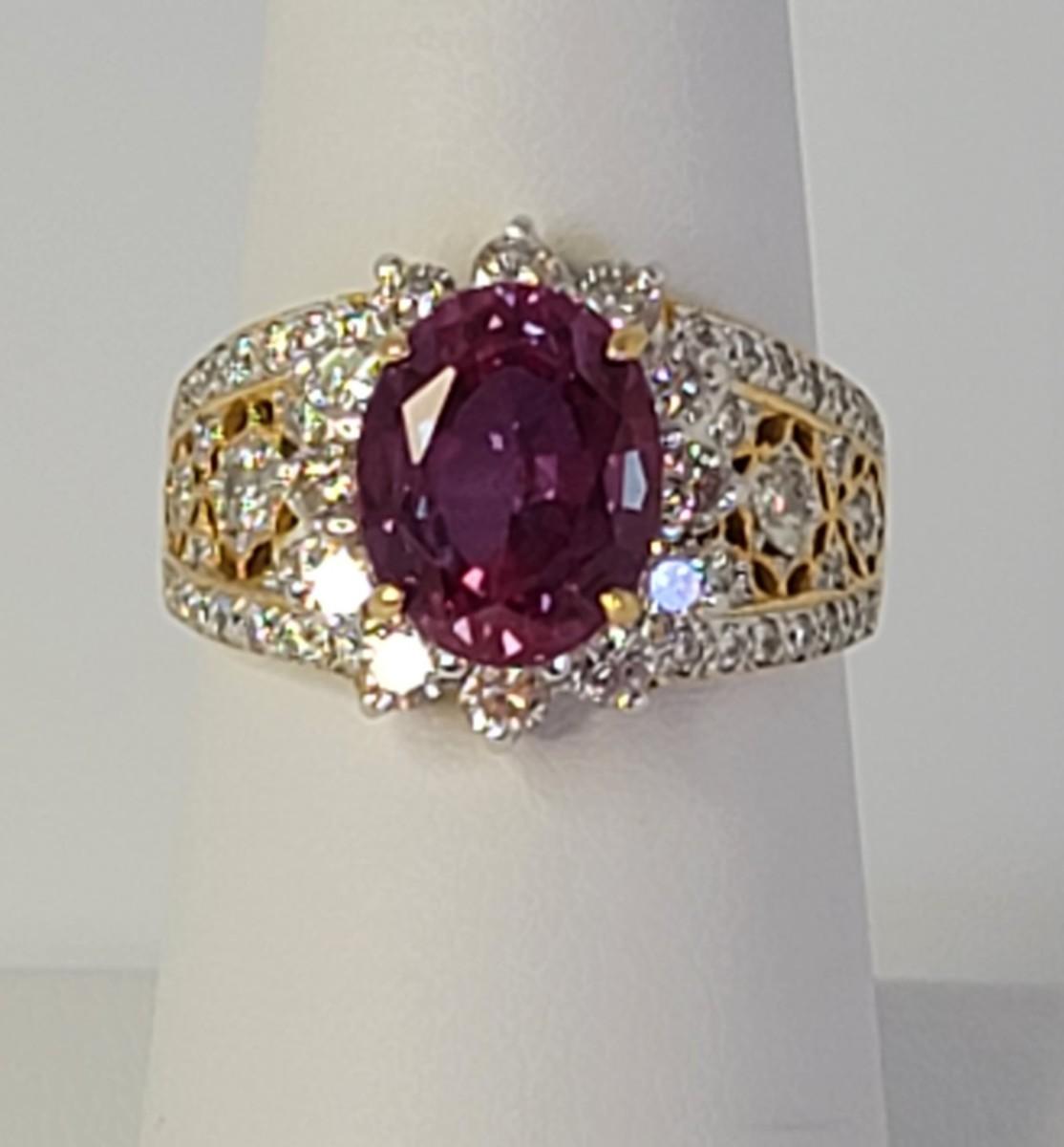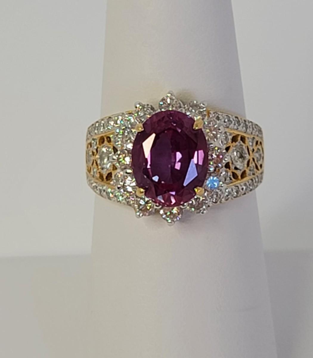 123: Size 7  6.9g 18k yellow gold ring Tanzanite covered in Diamonds