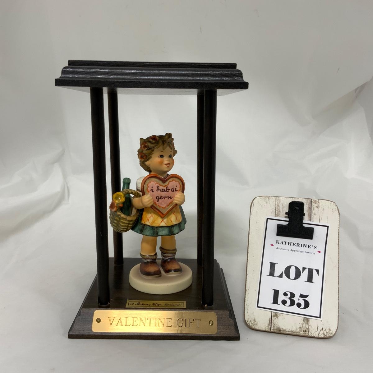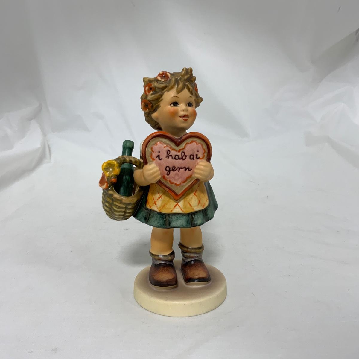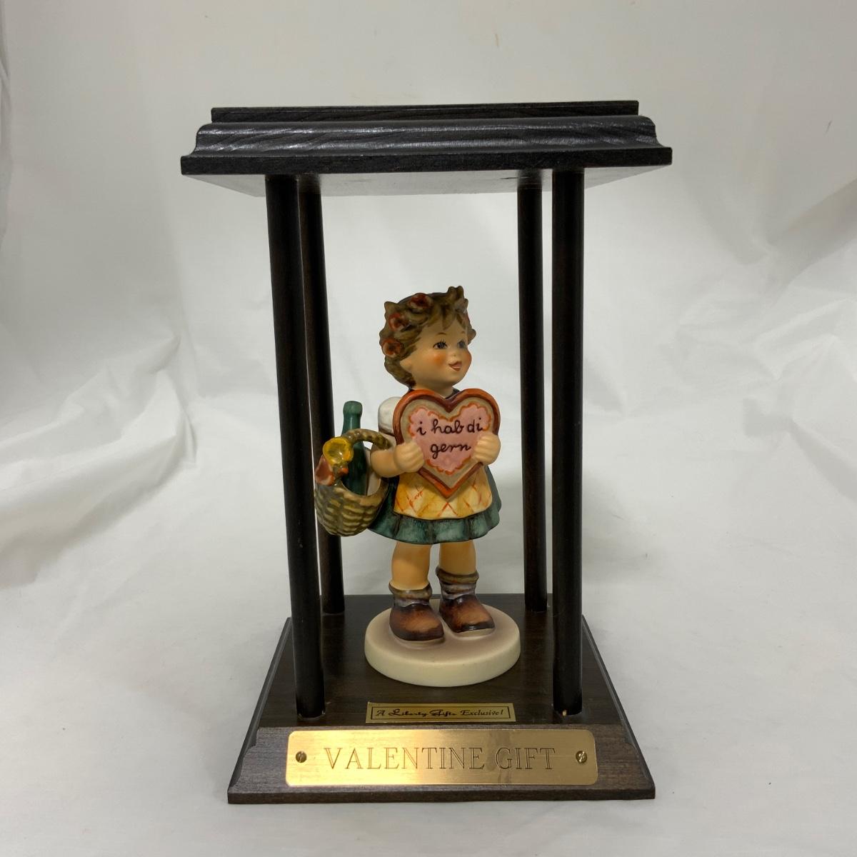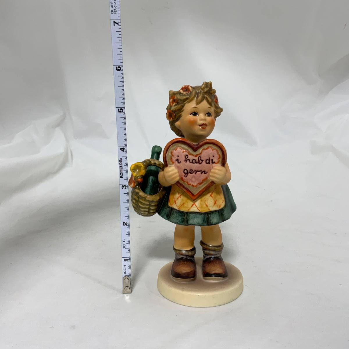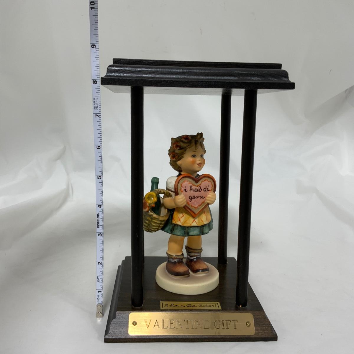 The First Exclusive Special Edition for Members of the Goebel Collector’s Club. Valentine Gift, Hum 387, TMK-5. Comes with decorative stand. Please see photos for details and condition. Crazing noted. ::: Shipping is available on this lot. If you require shipping you must let us know at the close of the auction. We will coordinate with you after the item has been won. Shipping fees will include insurance up to or exceeding the value of all items being mailed. If you have any questions regarding this lot please contact the auctioneer either via this website, by direct email or by phone. PICK UP TIMES and other important information can be found in the TERMS and DESCRIPTION of the auction. Please take a look for pertinent information. Thanks!