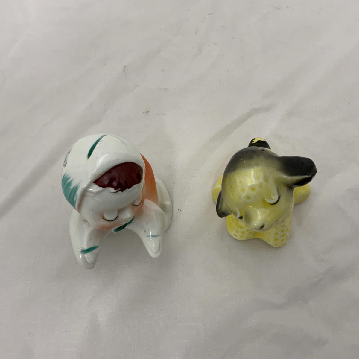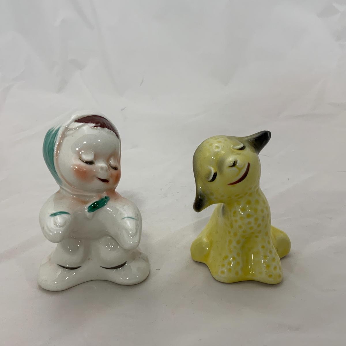 From the Estate of Peter and Alice Radovanovich: Adorable set of Van Tellingen 1950s Girl and Lamb Huggies. I love the color of the lamb! Both are in exceptional vintage condition. Please see photos for details and condition. ::: Shipping is available on this lot. If you require shipping you must let us know at the close of the auction. We will coordinate with you after the item has been won. Shipping fees will include insurance up to or exceeding the value of all items being mailed. If you have any questions regarding this lot please contact the auctioneer either via this website, by direct email or by phone. PICK UP TIMES and other important information can be found in the TERMS and DESCRIPTION of the auction. Please take a look for pertinent information. Thanks!