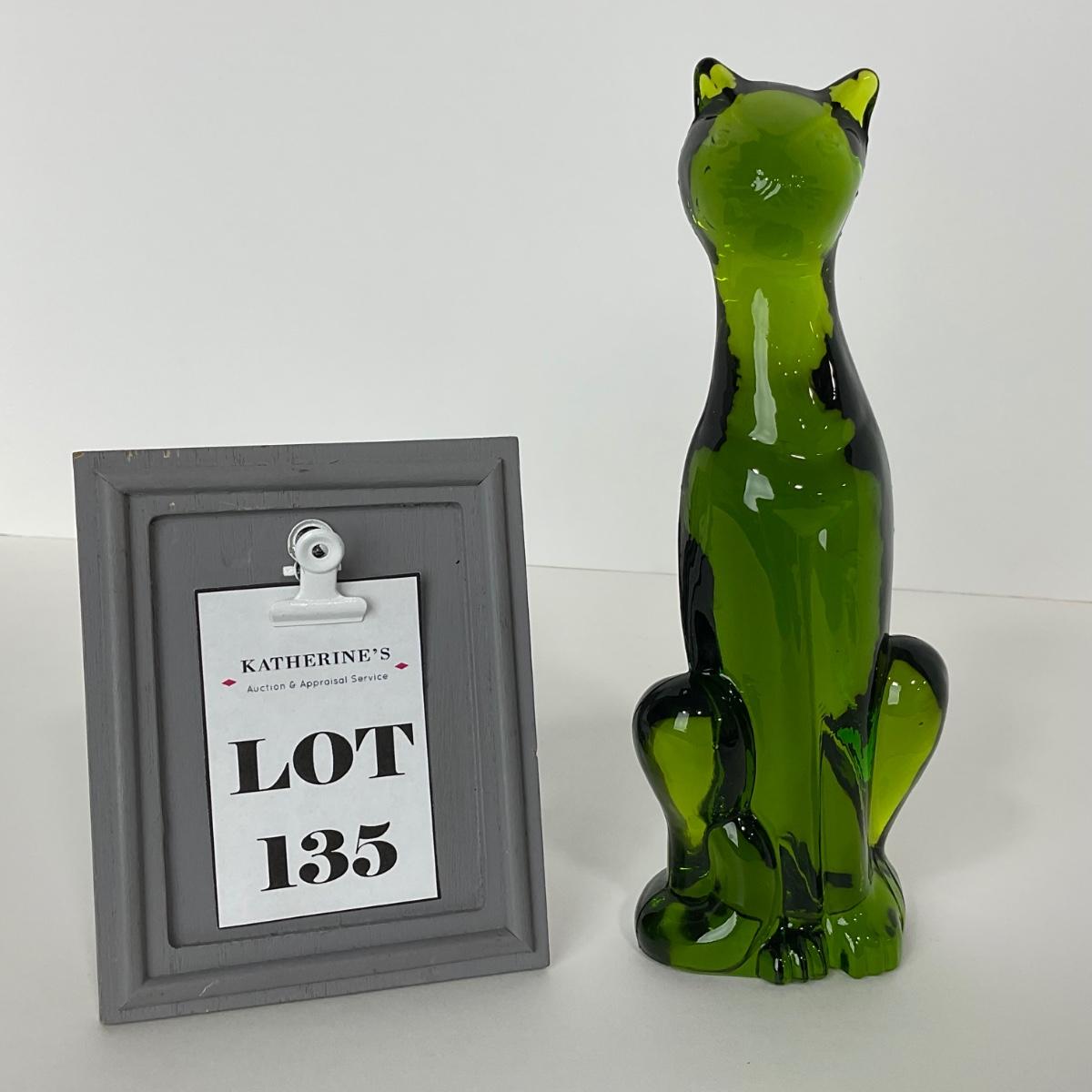 One VIking epic green cat figure. This piece has no damage, and appears to be in great shape with no visable chips, cracks, or broken pieces. 3 inches by 8 inches tall. Please see photos for details and condition. Any condition statement is given as a courtesy to a client, is an opinion, and should not be treated as a statement of fact. Reference to condition written, oral or within a condition report shall not be regarded as a full account of condition and may not include all defects, alterations, or restorations. Absence of a condition report does not imply a lot is flawless or lacking imperfections or damage. Katherine’s Auction & Appraisal Service shall have no responsibility for any error or omission. Returns shall not be accepted on the basis of condition. ::: Shipping is available on this lot. If you require shipping you must let us know at the close of the auction. We will coordinate with you after the item has been won. Shipping fees will include insurance up to or exceeding the value of all items being mailed. If you have any questions regarding this lot please contact the auctioneer either via this website, by direct email or by phone. PICK UP TIMES and other important information can be found in the TERMS and DESCRIPTION of the auction. Please take a look for pertinent information. Thanks!