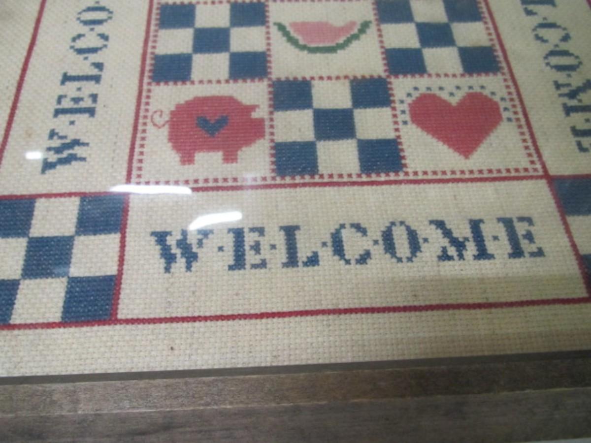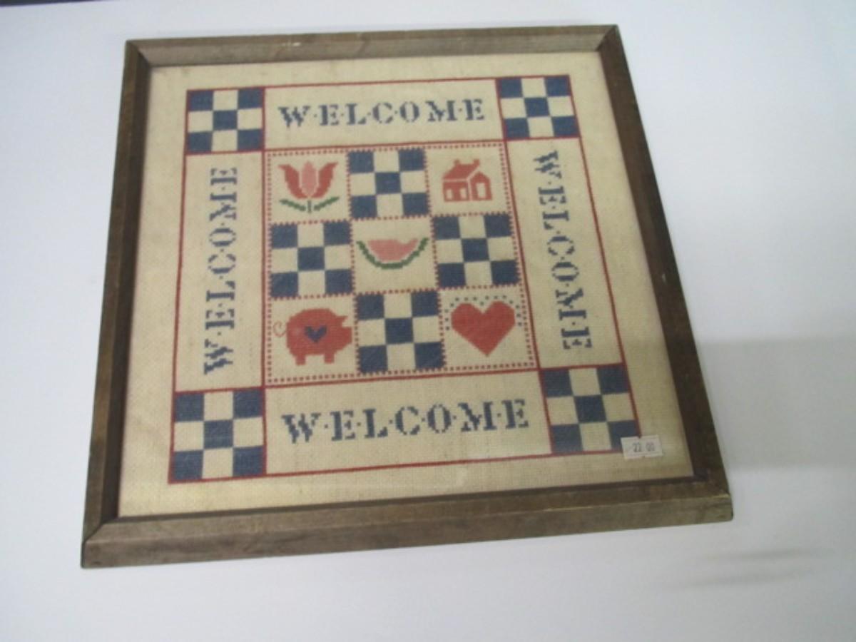 13.5" x 13.5" Welcome Patchwork Framed Cross Stitch