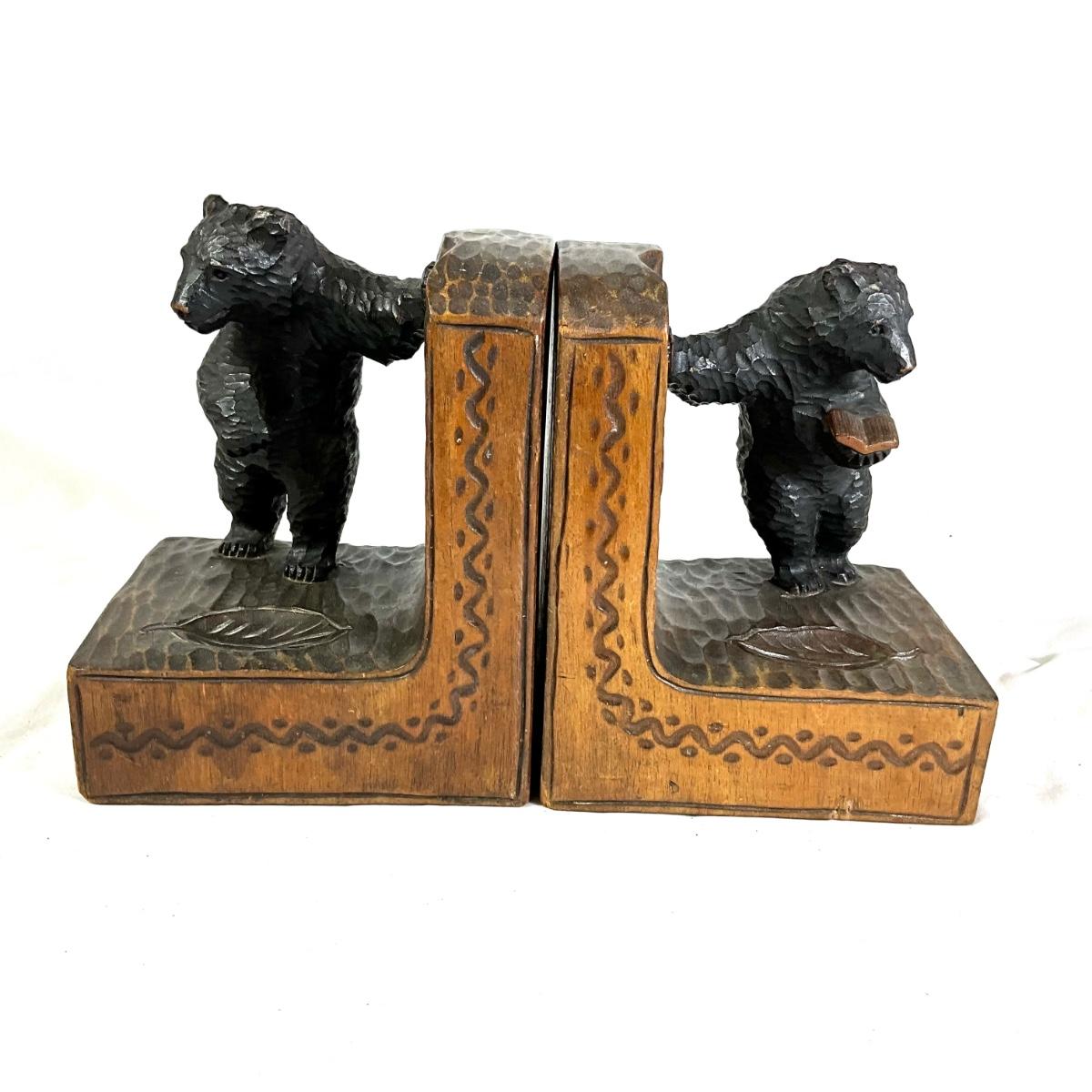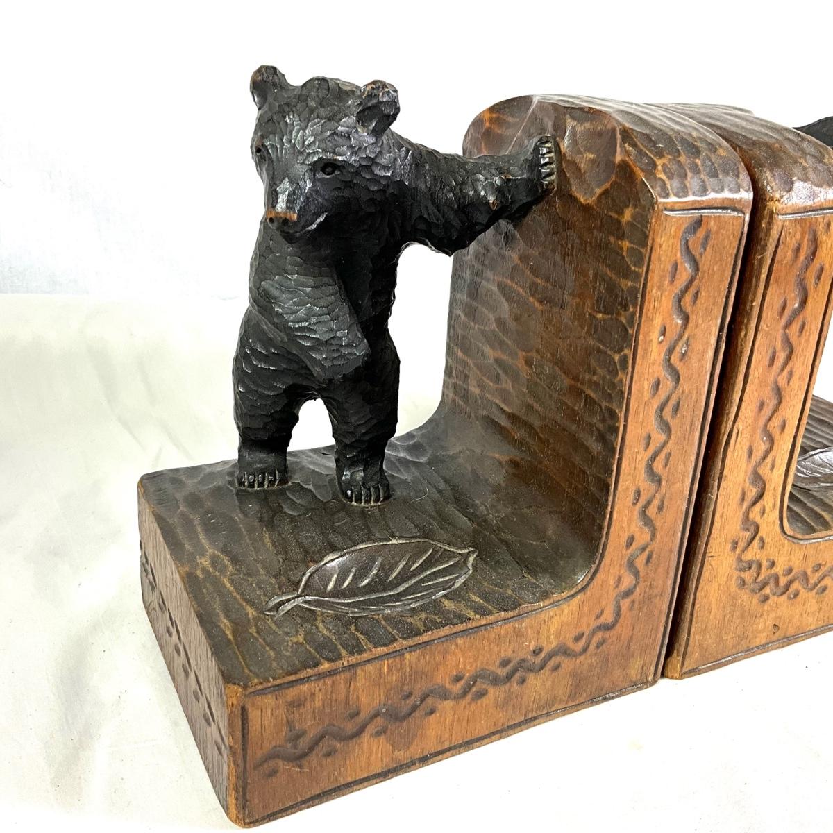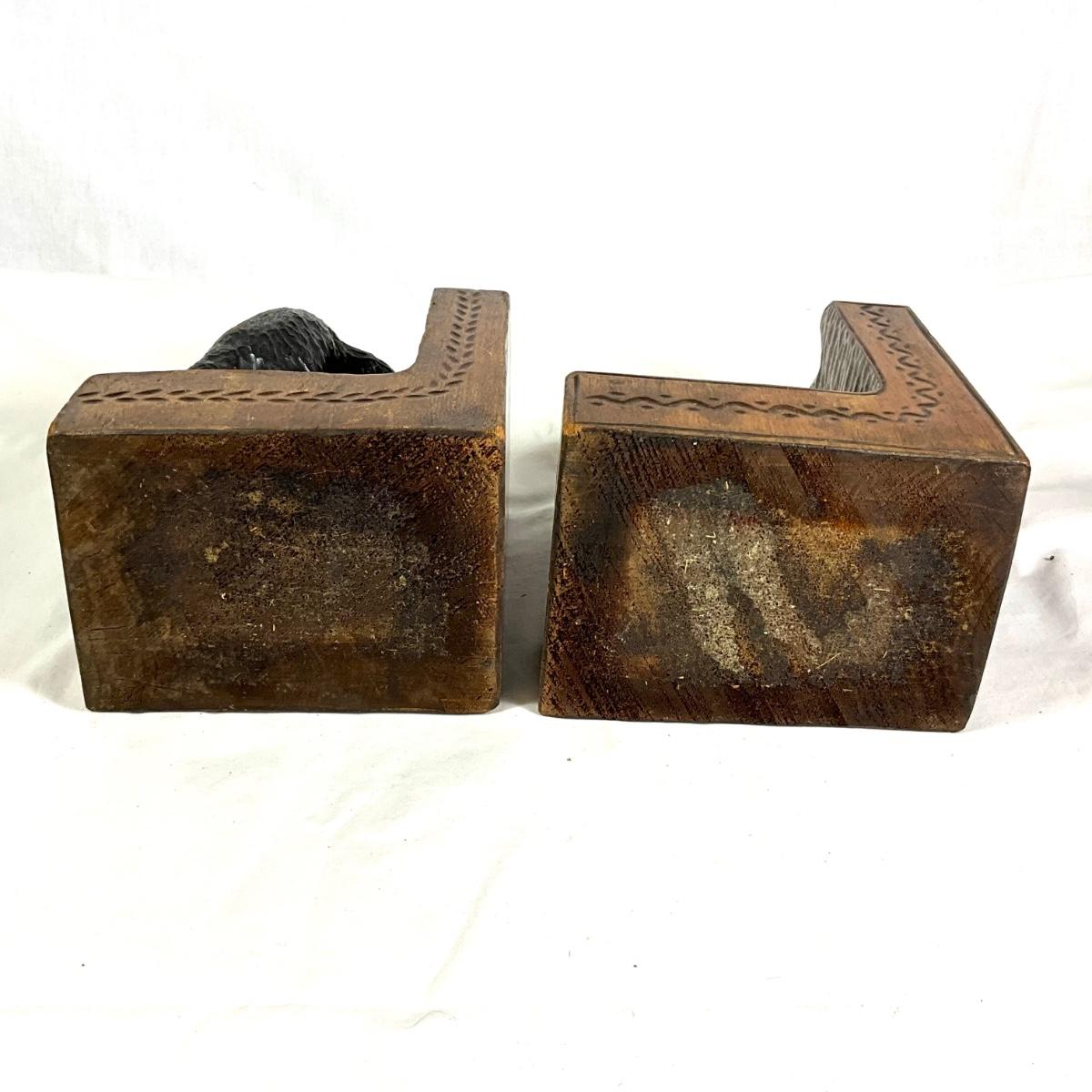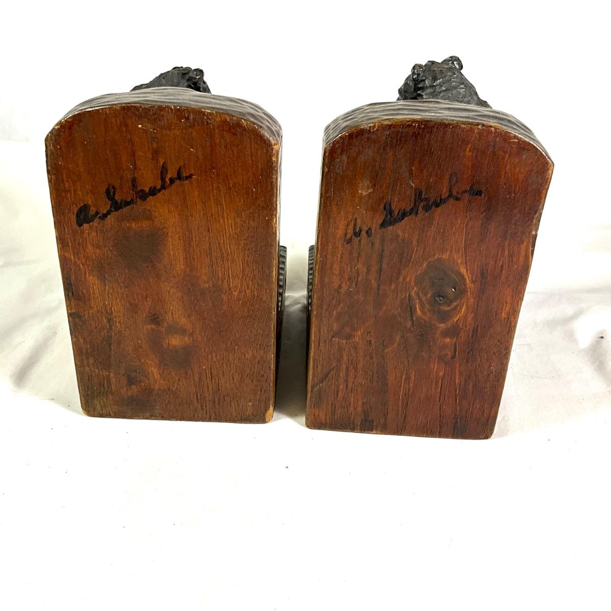 1350 Antique Hand-Carved German Black Forest Wooden Bear Signed Bookends