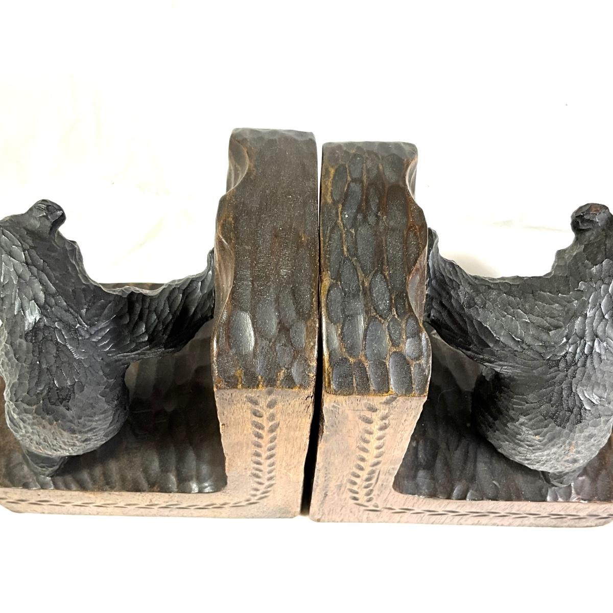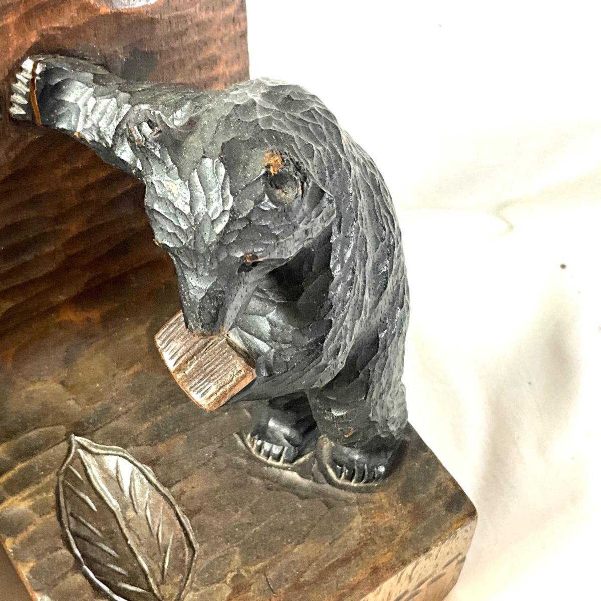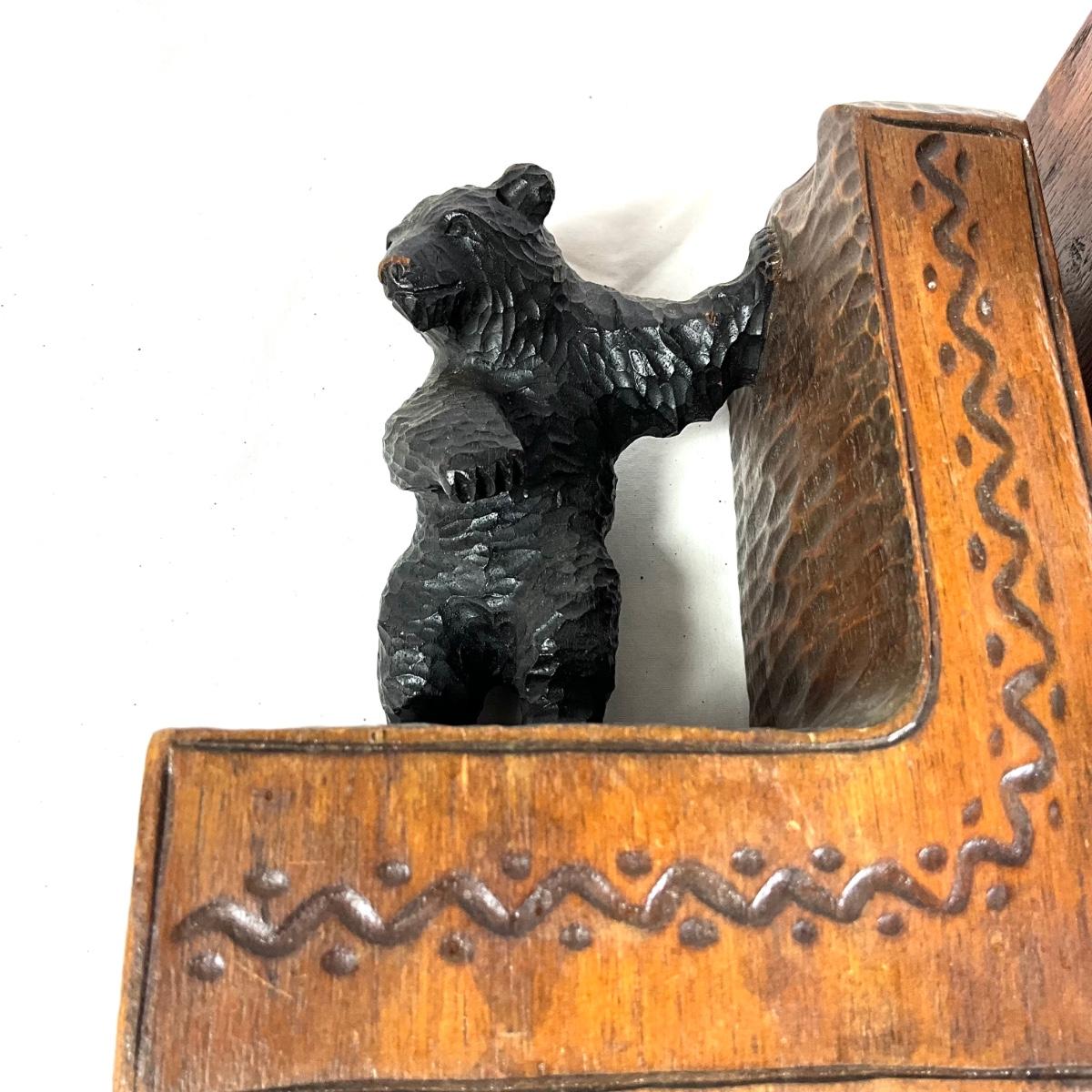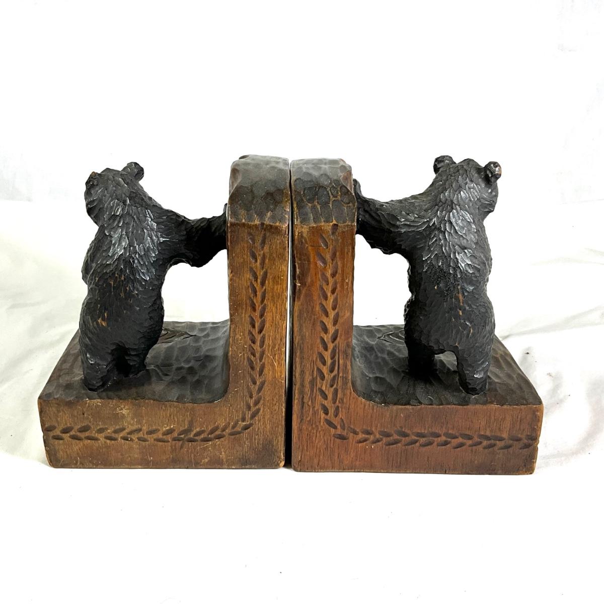 1350 Antique Hand-Carved German Black Forest Wooden Bear Signed Bookends