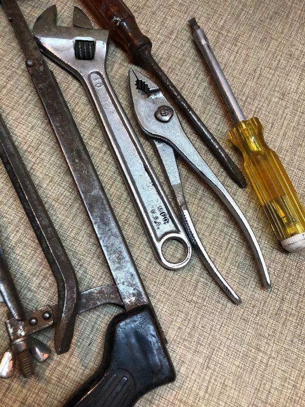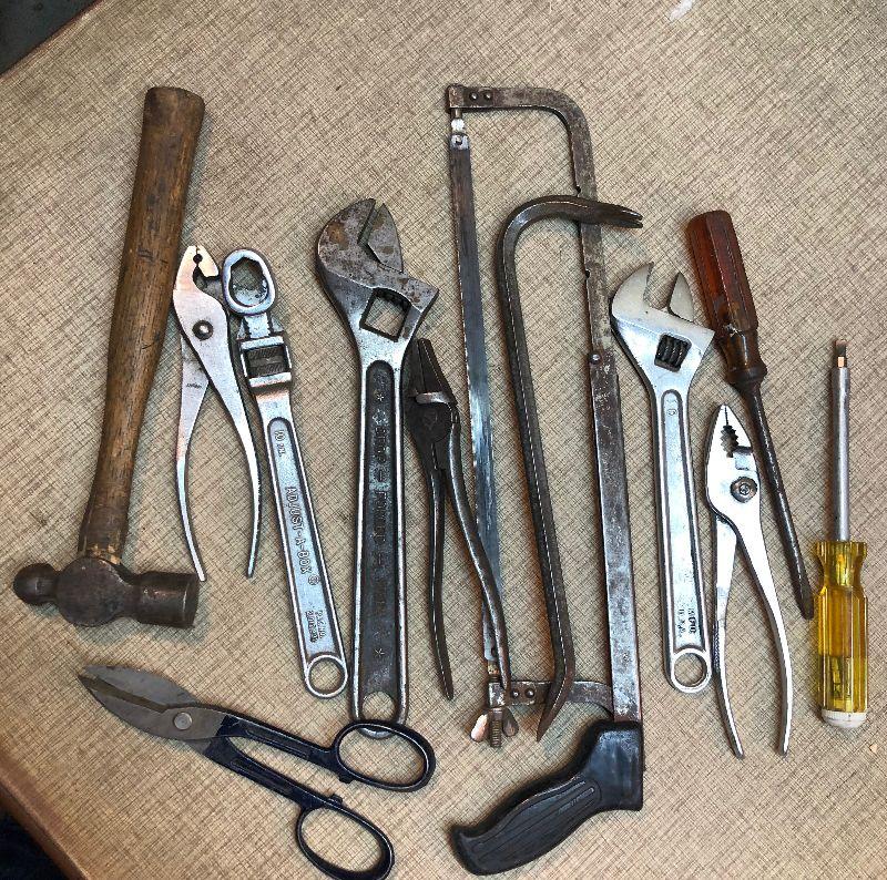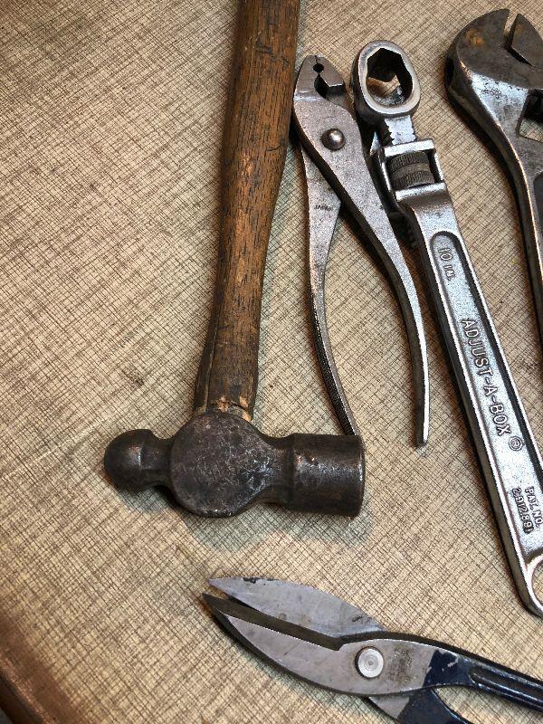 #1352 G HAND TOOL Lot: Hammer, wrench& Hacksaw