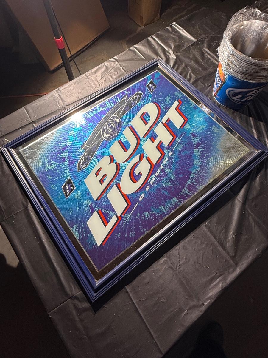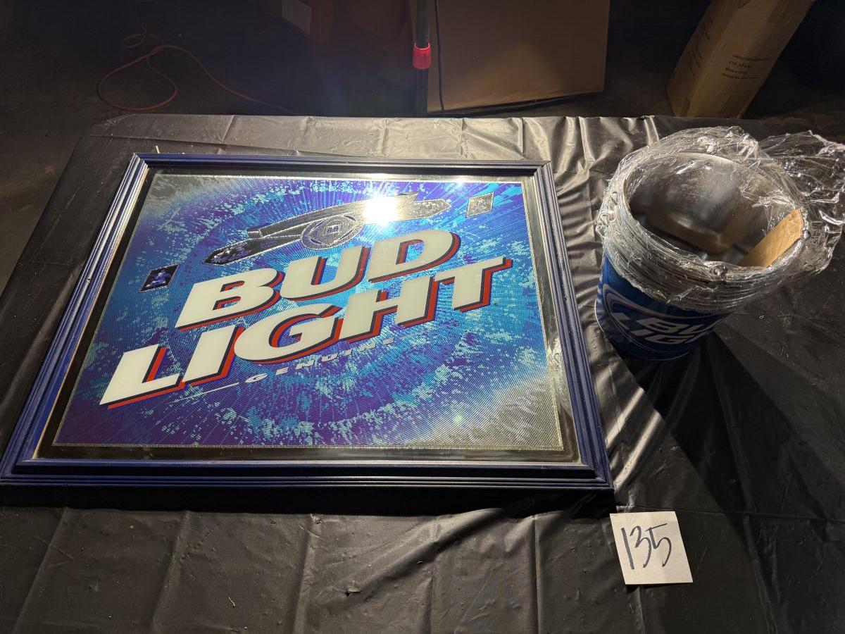 135-Bud Light framed and metal buckets