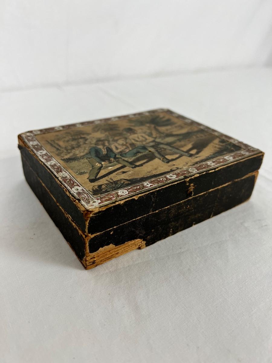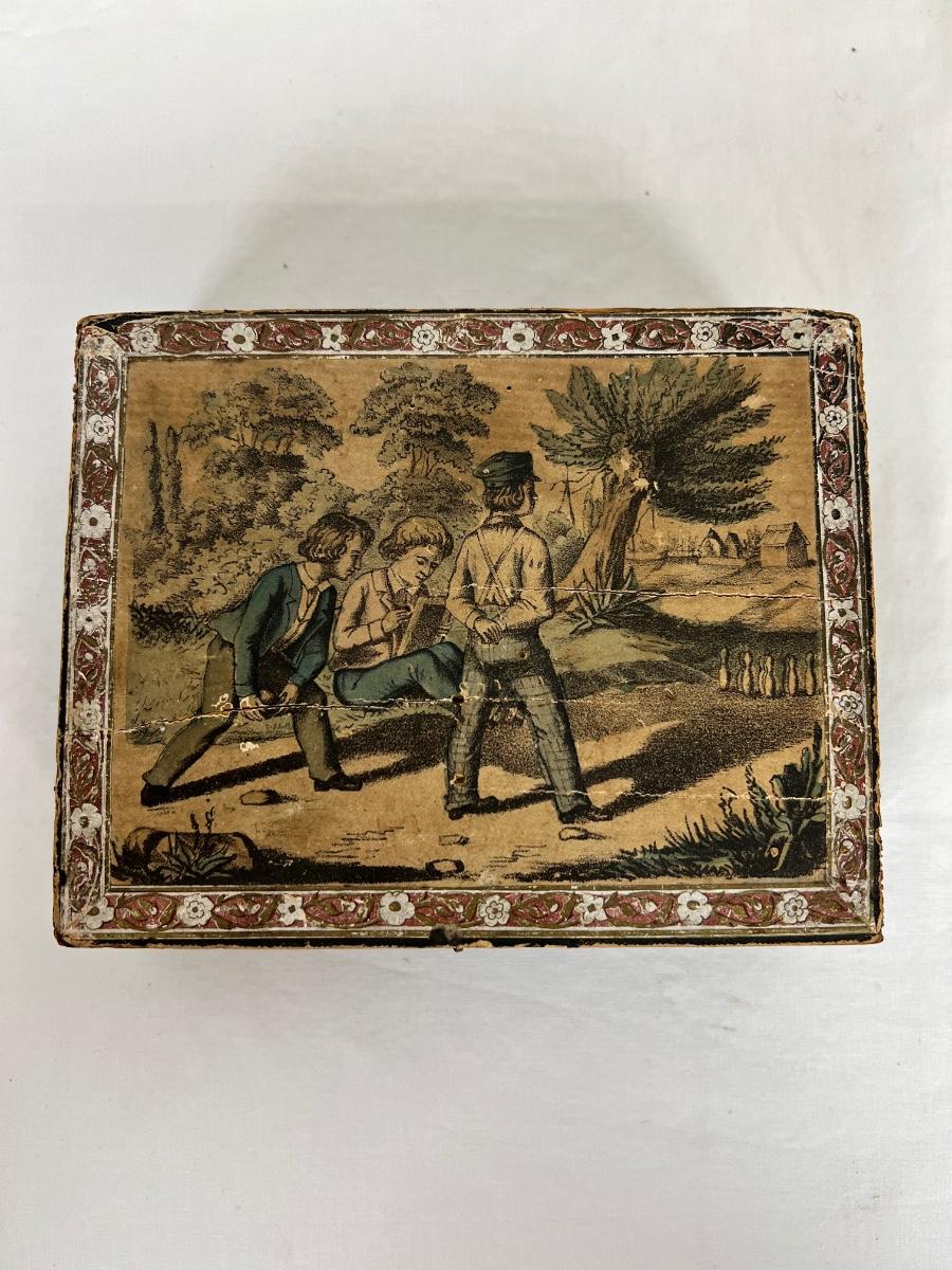 136  Antique German Toy, Wooden Picture Blocks in Box