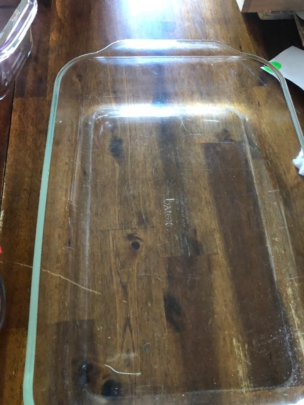 Casserole dish half-size and bread pan. This is an ONSITE Auction all items will need to be picked up on location. Please see auction description for pick up procedures