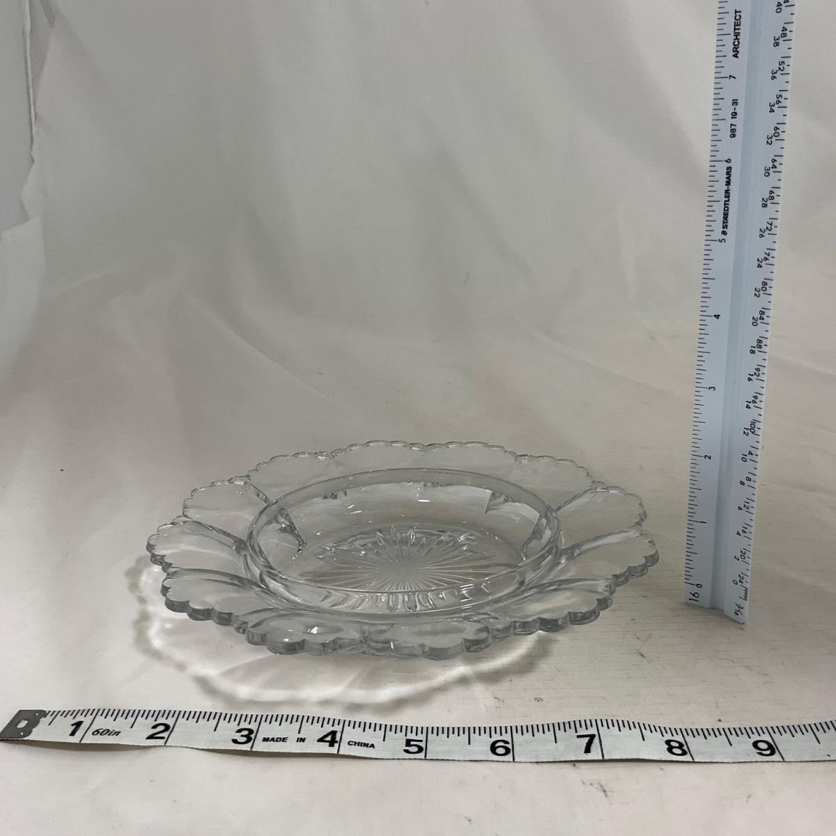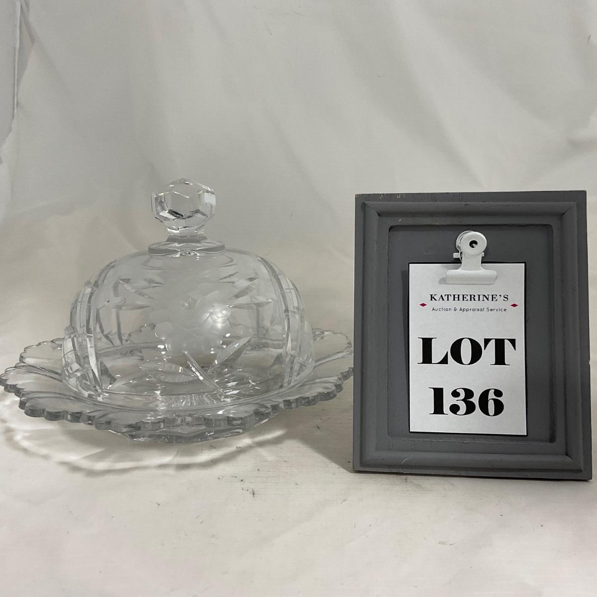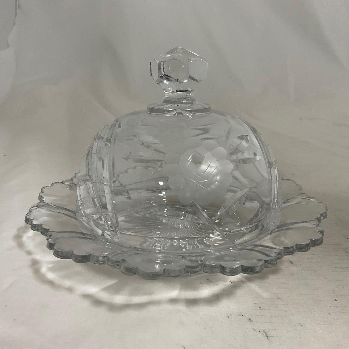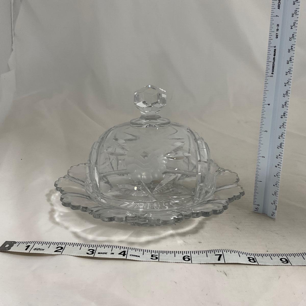 Clear glass covered butter dish. Has been loved. Please see photos for details and condition. ::: Shipping is available on this lot. If you require shipping you must let us know at the close of the auction. We will coordinate with you after the item has been won. Shipping fees will include insurance up to or exceeding the value of all items being mailed. If you have any questions regarding this lot please contact the auctioneer either via this website, by direct email or by phone. PICK UP TIMES and other important information can be found in the TERMS and DESCRIPTION of the auction. Please take a look for pertinent information. Thanks!