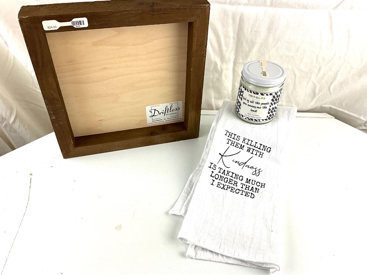 136 Inspirational Towel, Sign, and Candle