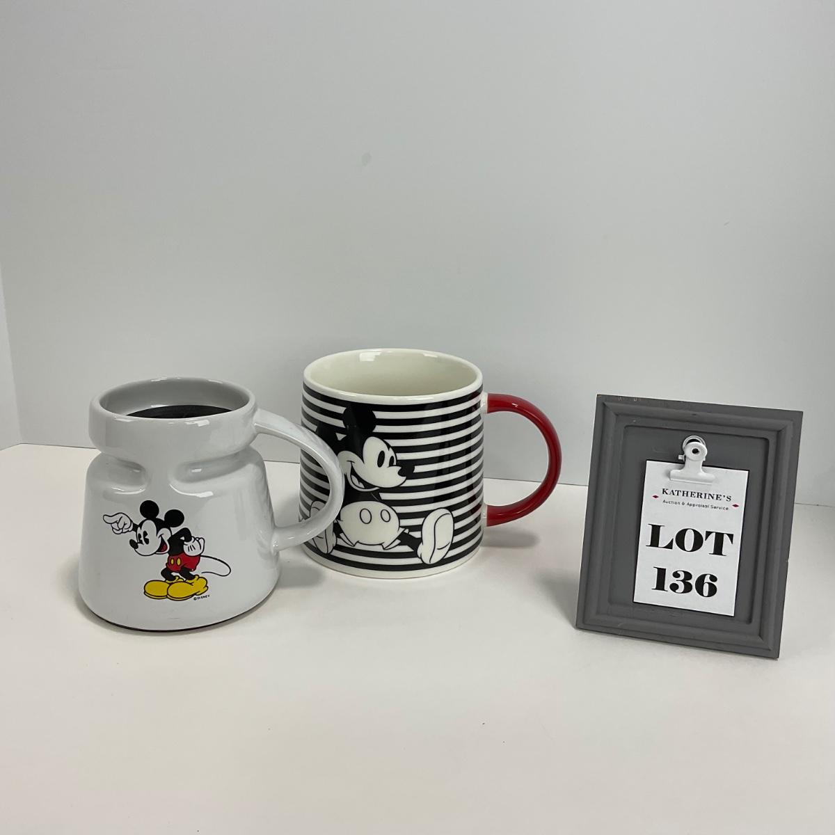 Two Mickey Mouse mugs in good shape. Please see photos for details and condition. Any condition statement is given as a courtesy to a client, is an opinion, and should not be treated as a statement of fact. Reference to condition written, oral or within a condition report shall not be regarded as a full account of condition and may not include all defects, alterations, or restorations. Absence of a condition report does not imply a lot is flawless or lacking imperfections or damage. Katherine’s Auction & Appraisal Service shall have no responsibility for any error or omission. Returns shall not be accepted on the basis of condition. ::: Shipping is available on this lot. If you require shipping you must let us know at the close of the auction. We will coordinate with you after the item has been won. Shipping fees will include insurance up to or exceeding the value of all items being mailed. If you have any questions regarding this lot please contact the auctioneer either via this website, by direct email or by phone. PICK UP TIMES and other important information can be found in the TERMS and DESCRIPTION of the auction. Please take a look for pertinent information. Thanks!