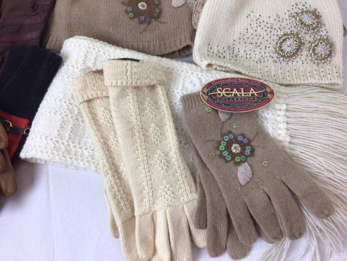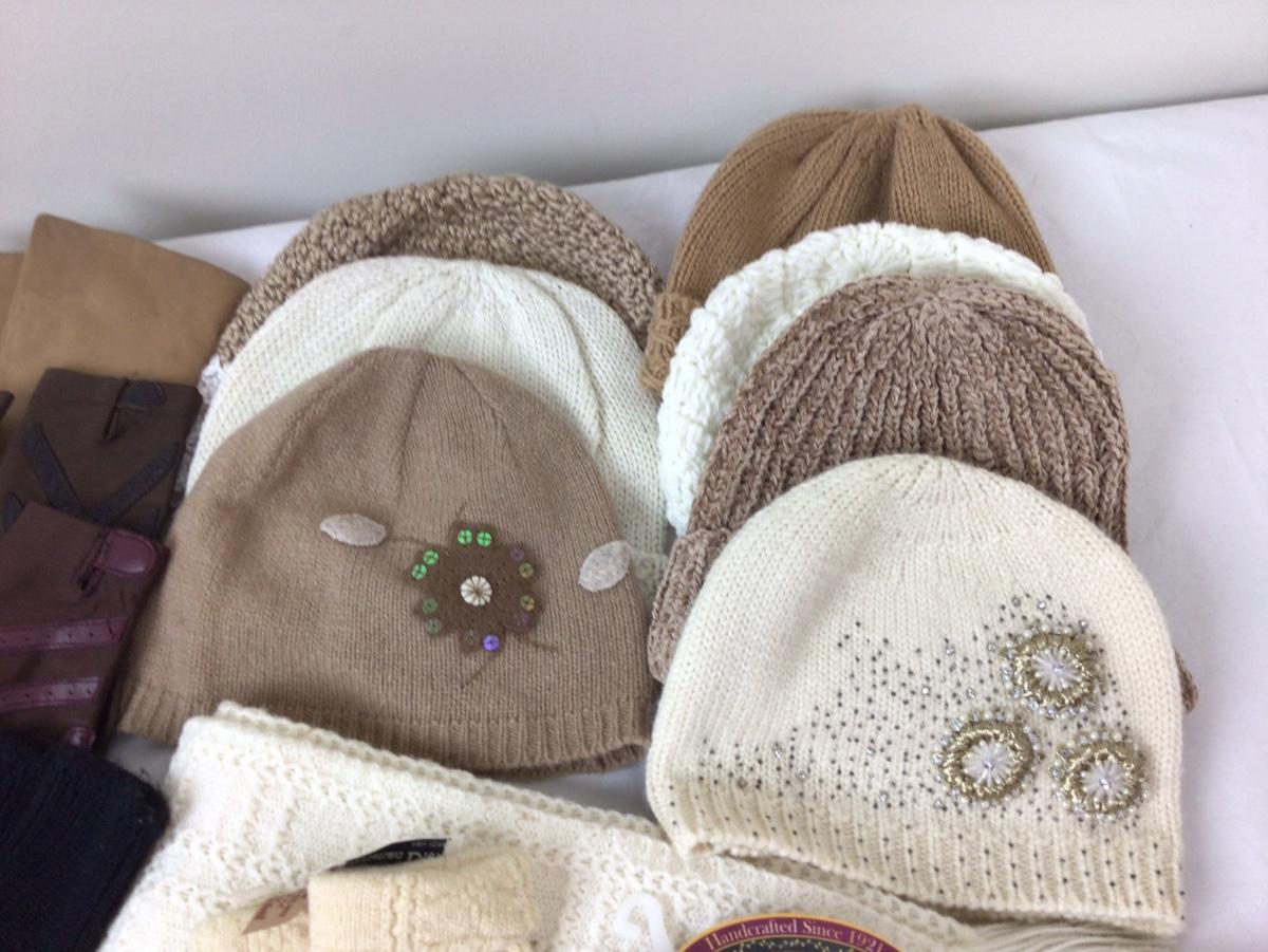 Lot contains gloves and hats, brands are Talbots, Dior, Nine West, some are new with tags.