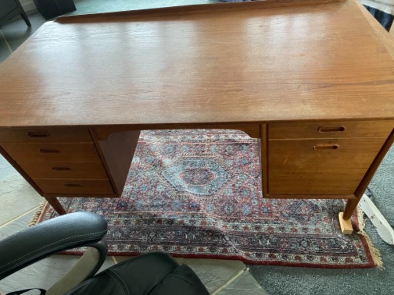 Mid century teak 6 drawer desk with bookcase front