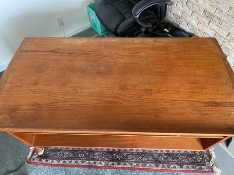 136 Mid Century Teak 6 Drawer Desk with Bookcase Front