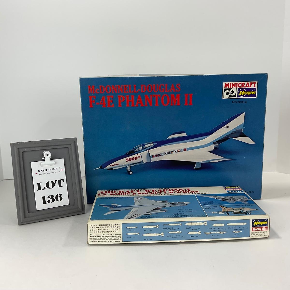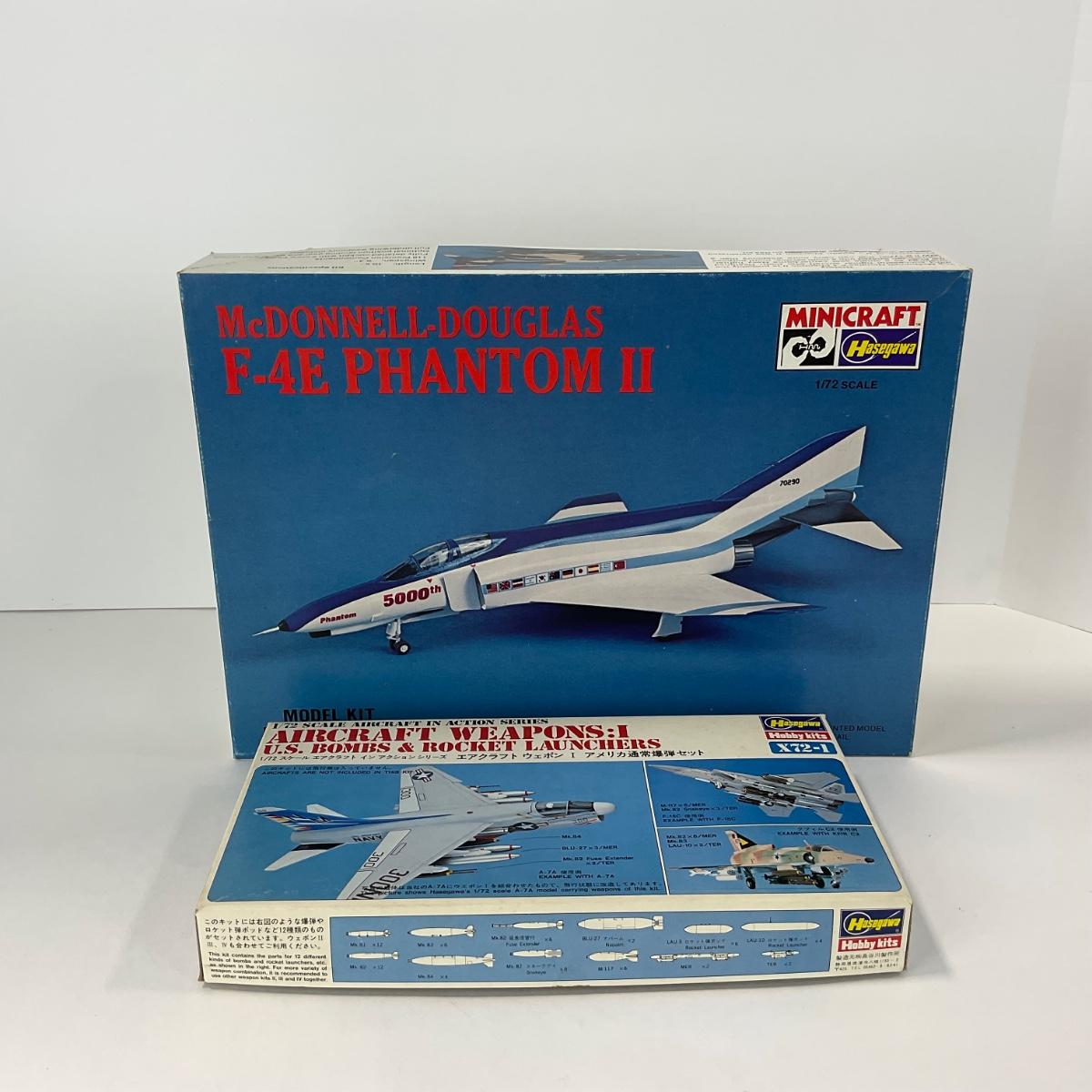 Two vintage Hasegawa model kits including: a McDonnell Douglas F-4E Phantom II 1:72 scale and Aircraft Weapons I U.S. Bombs and Rocket Launchers model kit 1:72 scale. Both model kits are believed to be complete however no guaranteed. Please see photos for details and condition. ::: Shipping is available on this lot. If you require shipping you must let us know at the close of the auction. We will coordinate with you after the item has been won. Shipping fees will include insurance up to or exceeding the value of all items being mailed. If you have any questions regarding this lot please contact the auctioneer either via this website, by direct email or by phone. PICK UP TIMES and other important information can be found in the TERMS and DESCRIPTION of the auction. Please take a look for pertinent information. Thanks!