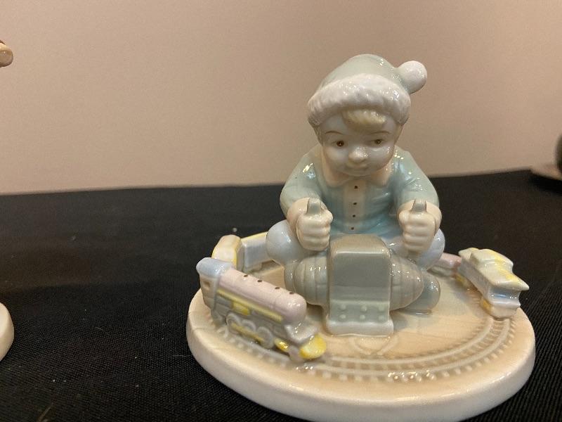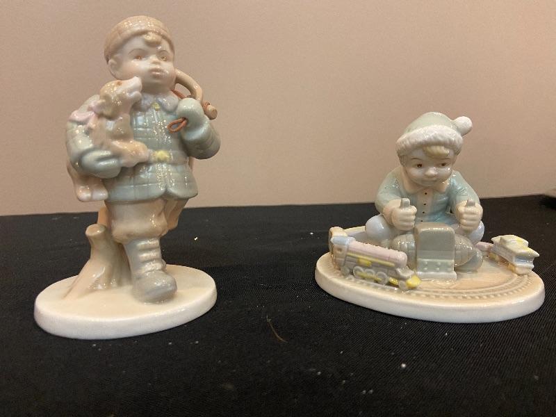 #136 RUSS Ceramic Figurines - Snow sled and Train.
