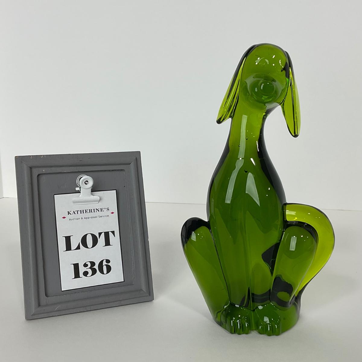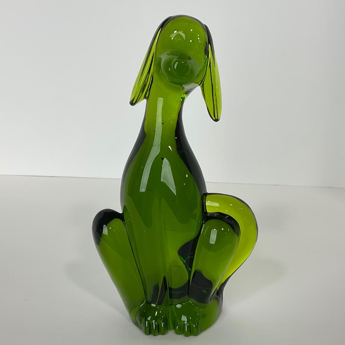 One Viking epic green dog figure. This piece does have a few scuff and scrapes but is in otherwise great condition. 4 1/2 inches wide by 8 1/4 inches tall. Please see photos for details and condition. Any condition statement is given as a courtesy to a client, is an opinion, and should not be treated as a statement of fact. Reference to condition written, oral or within a condition report shall not be regarded as a full account of condition and may not include all defects, alterations, or restorations. Absence of a condition report does not imply a lot is flawless or lacking imperfections or damage. Katherine’s Auction & Appraisal Service shall have no responsibility for any error or omission. Returns shall not be accepted on the basis of condition. ::: Shipping is available on this lot. If you require shipping you must let us know at the close of the auction. We will coordinate with you after the item has been won. Shipping fees will include insurance up to or exceeding the value of all items being mailed. If you have any questions regarding this lot please contact the auctioneer either via this website, by direct email or by phone. PICK UP TIMES and other important information can be found in the TERMS and DESCRIPTION of the auction. Please take a look for pertinent information. Thanks!