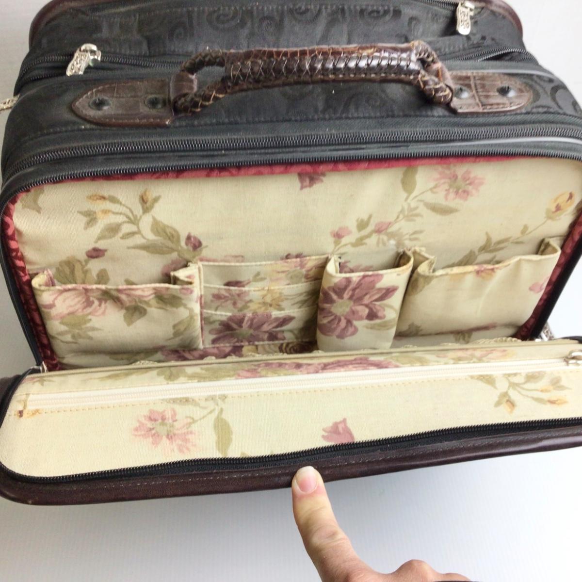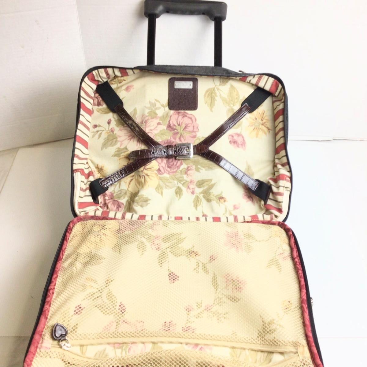 Floral print interior with expandable handle and leather handle with metal Brighton design accents