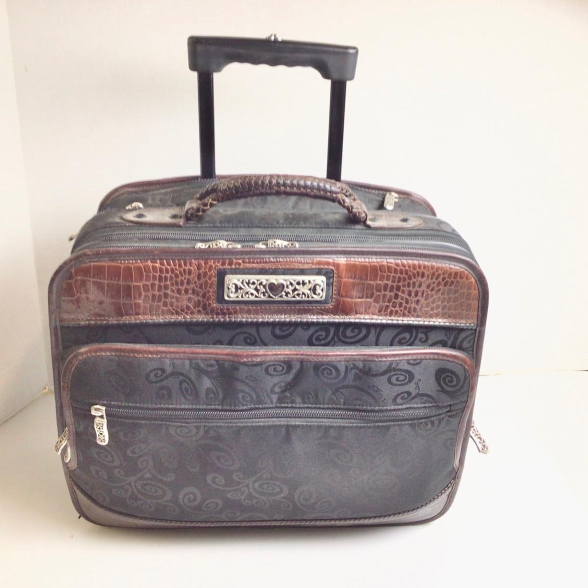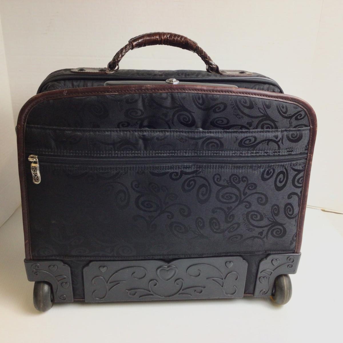 1360 BRIGHTON Black and Brown Leather Rolling Briefcase