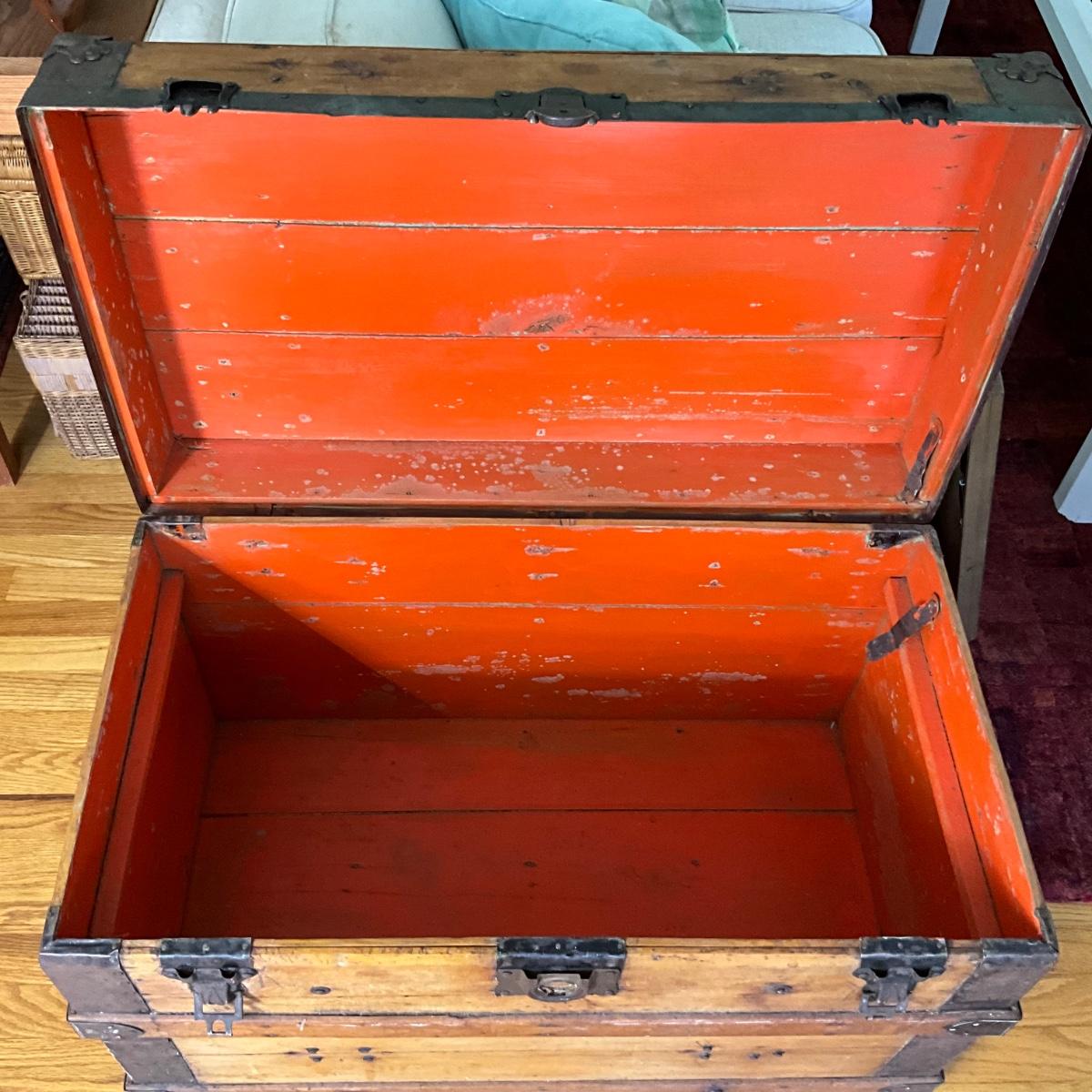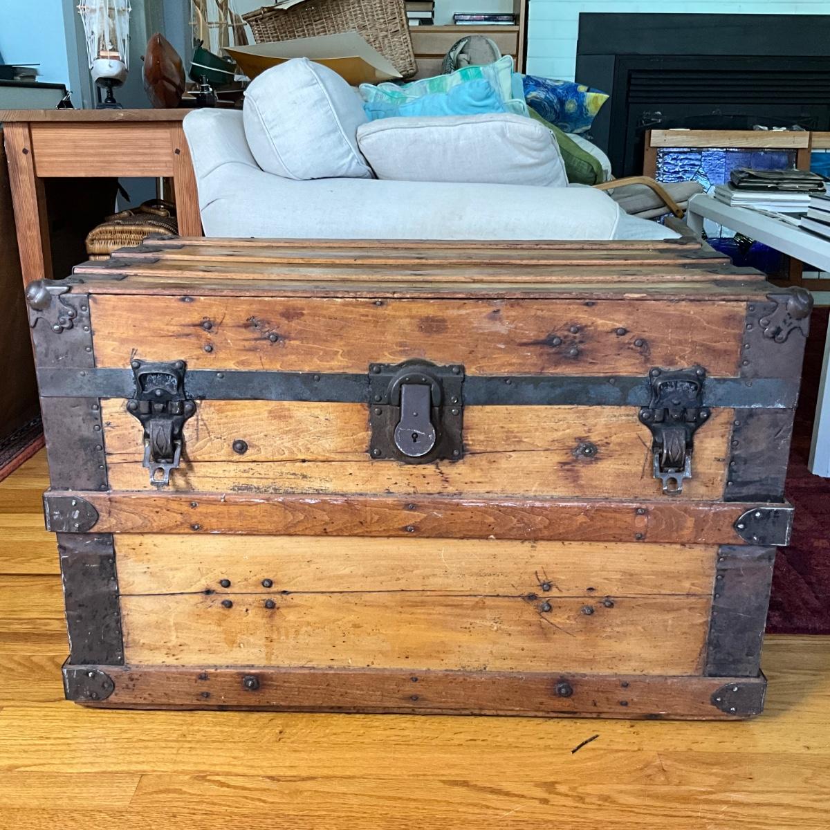 1361 Antique Flat Top Steamer Trunk