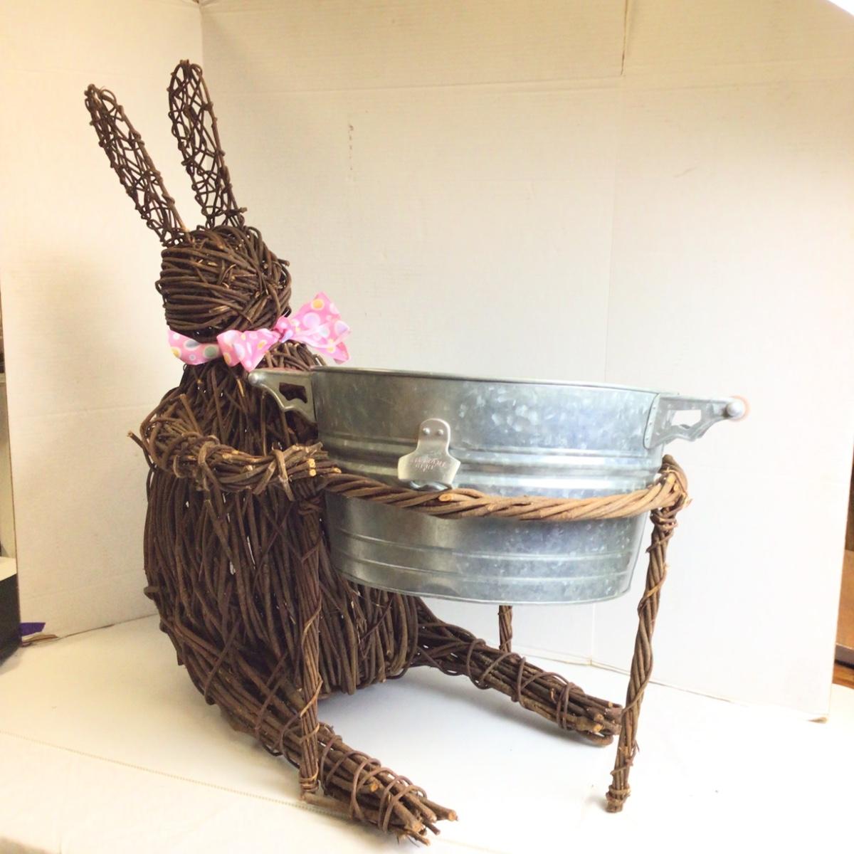This fabulous willow weave Rabbit can hold a flower pot or a Beverage Tub