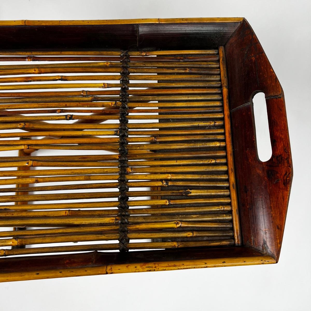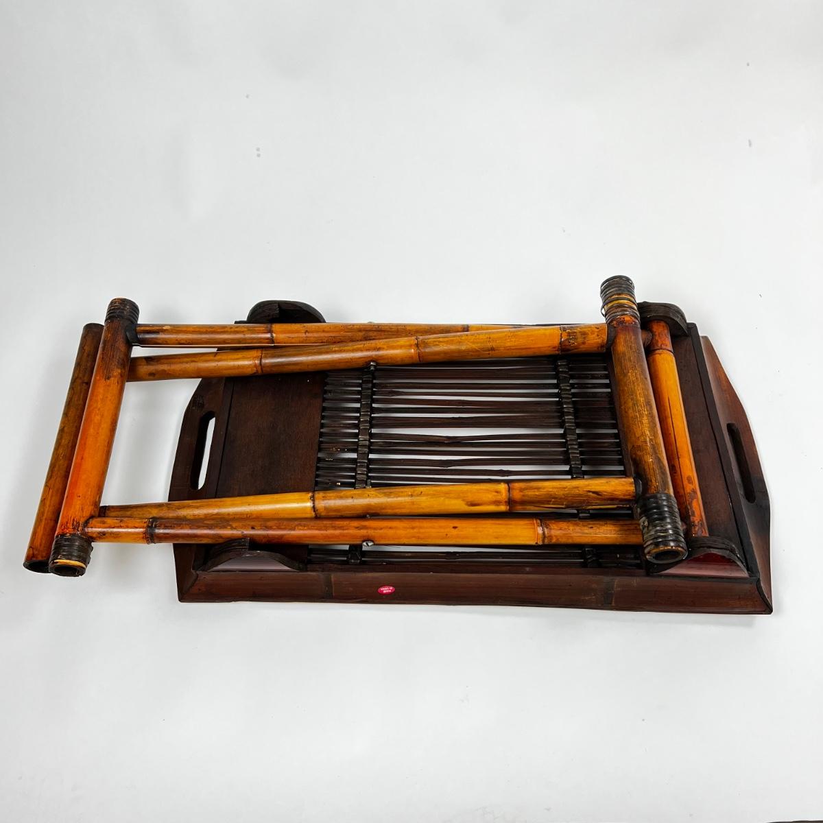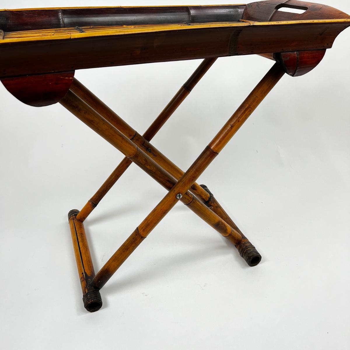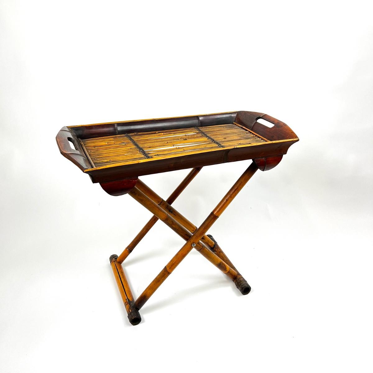 1362 Vintage Rattan and Bamboo Folding Side Table