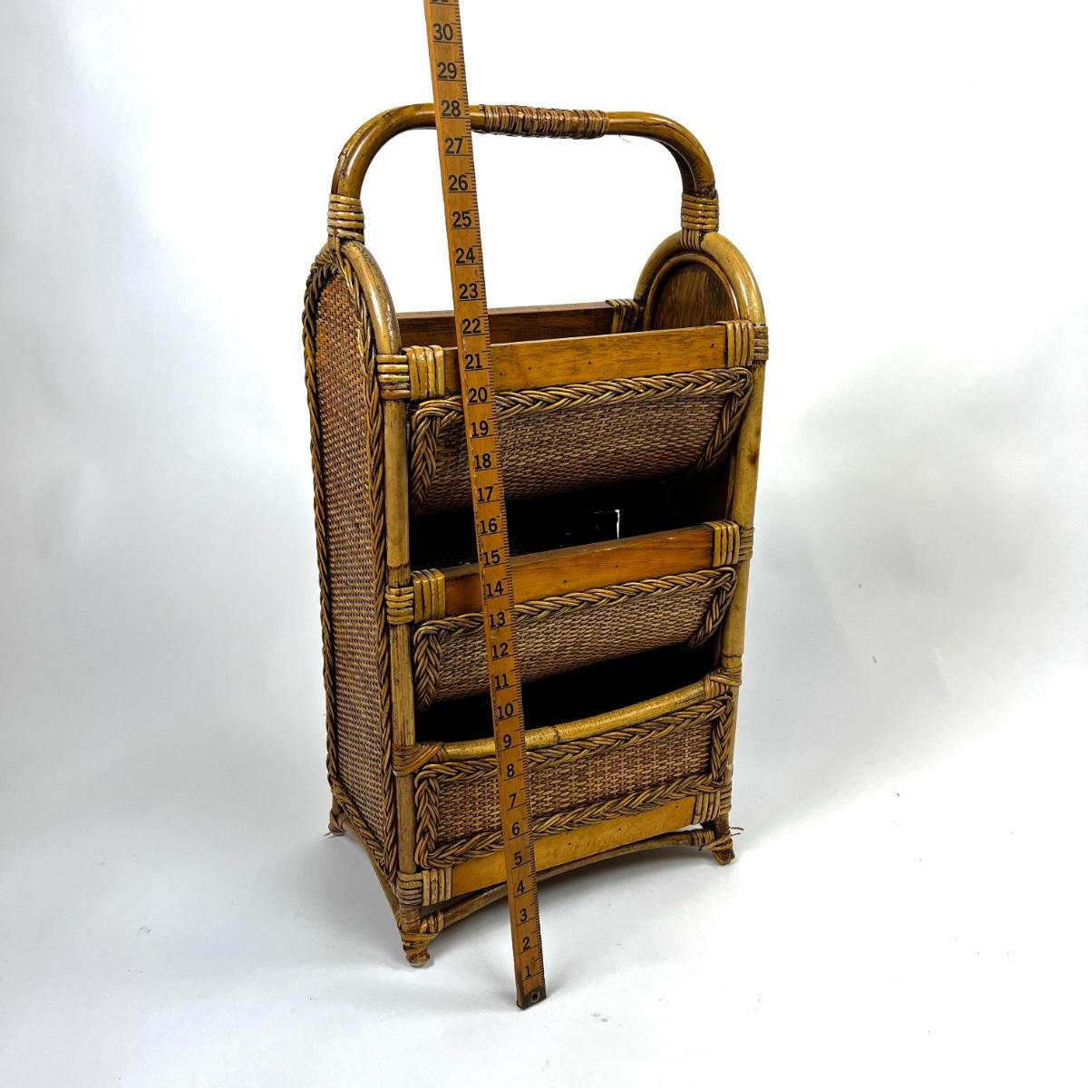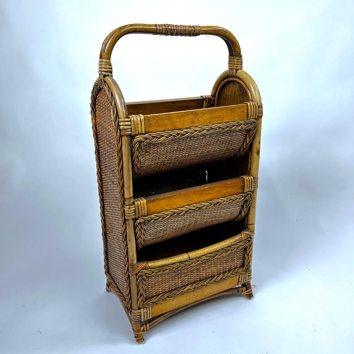 Three Tier Rattan and Bamboo Magazine Storage Rack.
