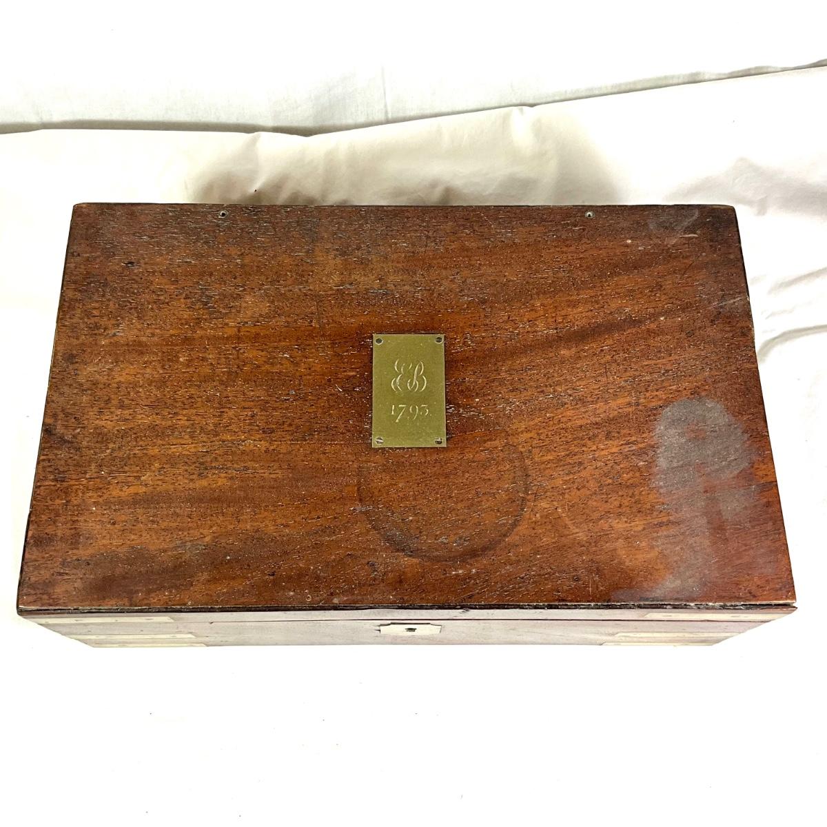 1365 Antique 1793 Mahogany Brass Bounded Lap Writing Desk