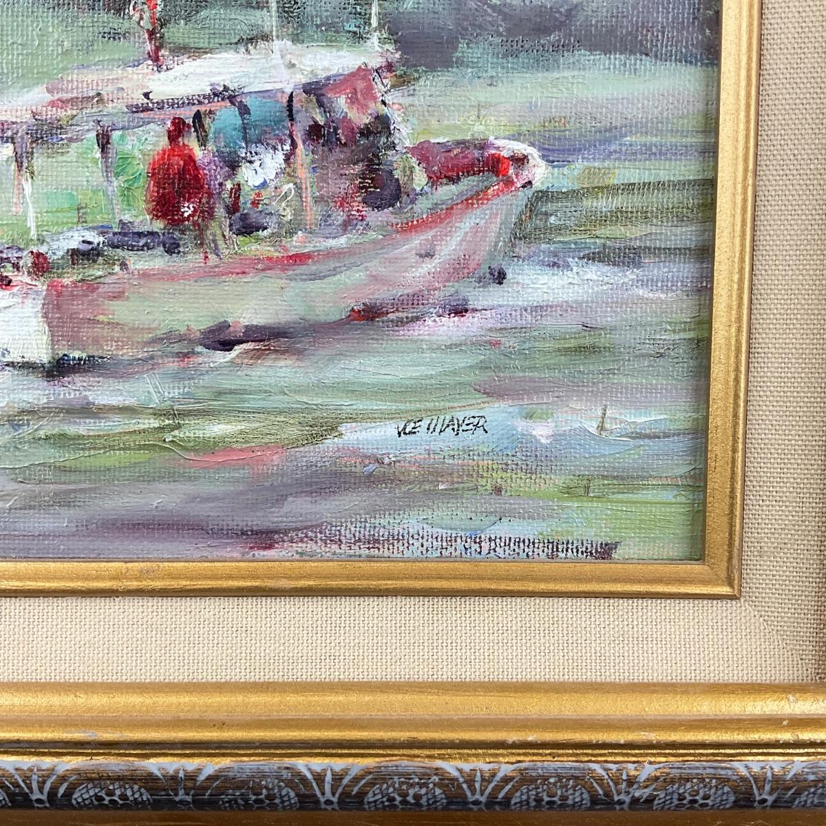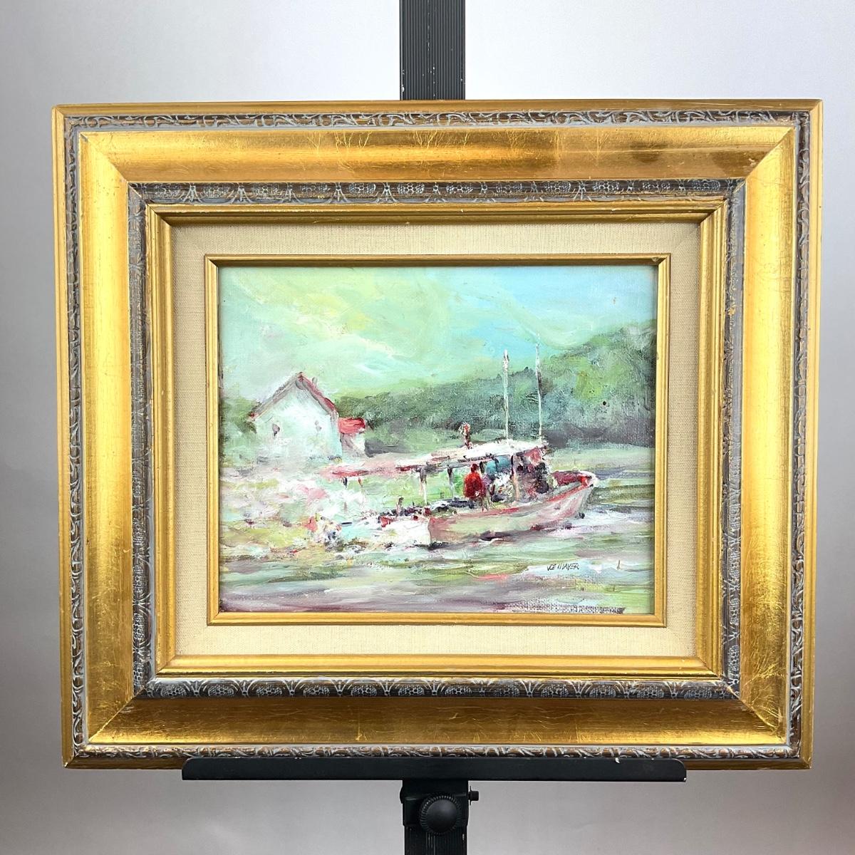 137 Joe Mayer Signed Oil on Board “ Peach Blossom Boat “