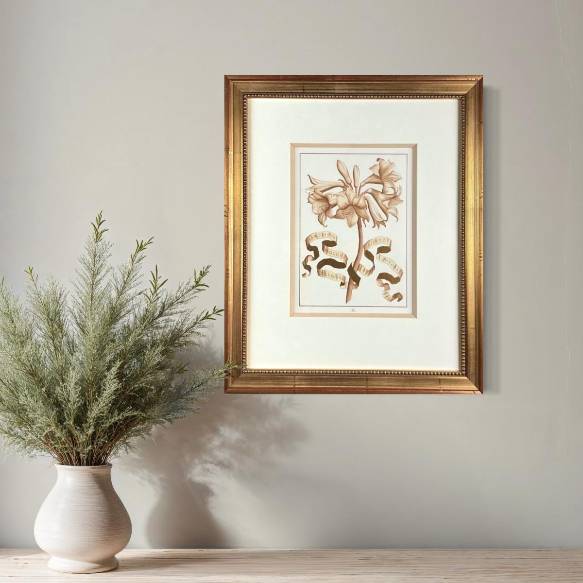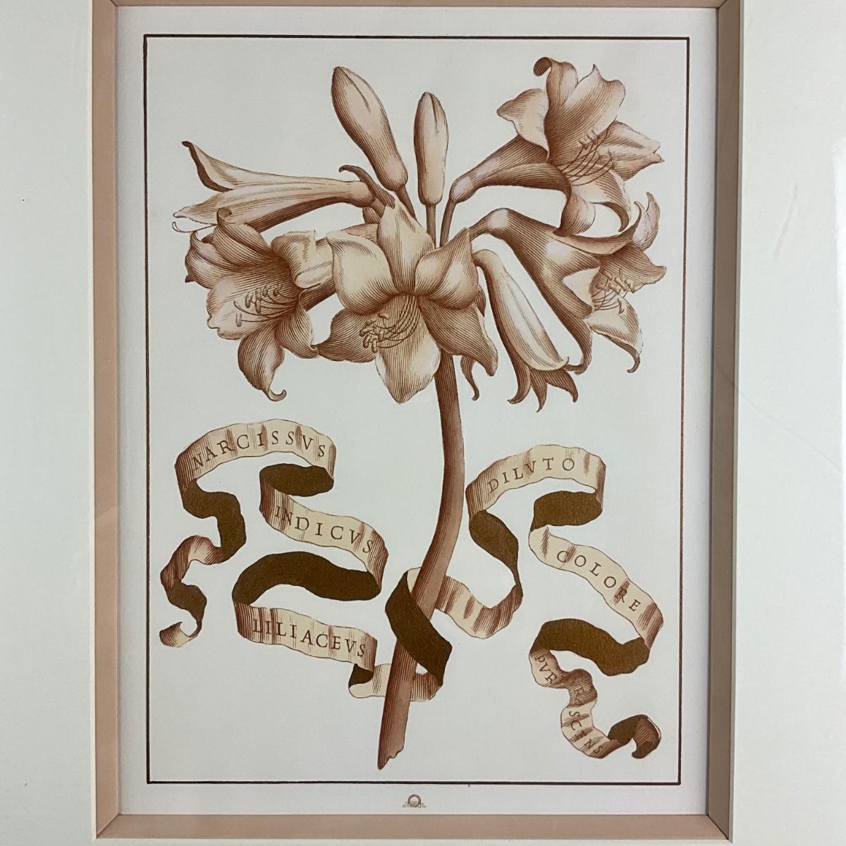 039 Botanical Belladdonna lily Pale Sepia Shades Colored Monochromatic Style by Giovanni Ferrari
