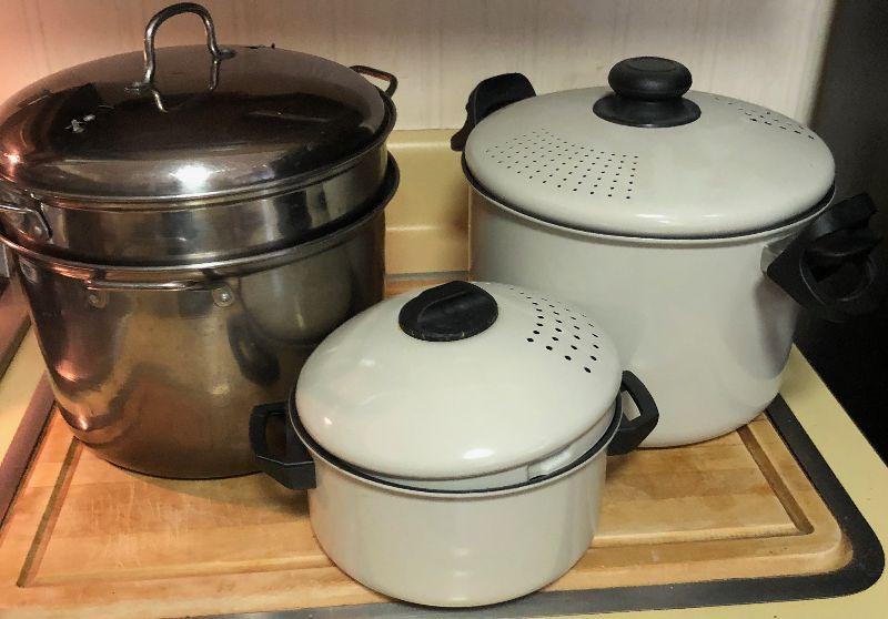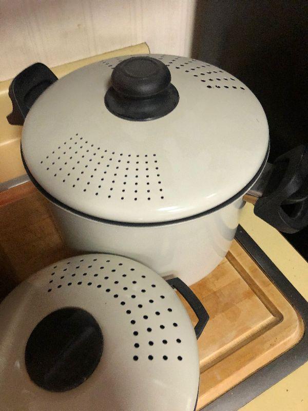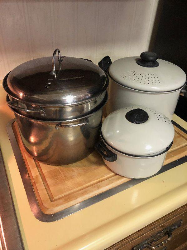 Used Excellent condition. Hardly used. Double boiler and Soup stock pot