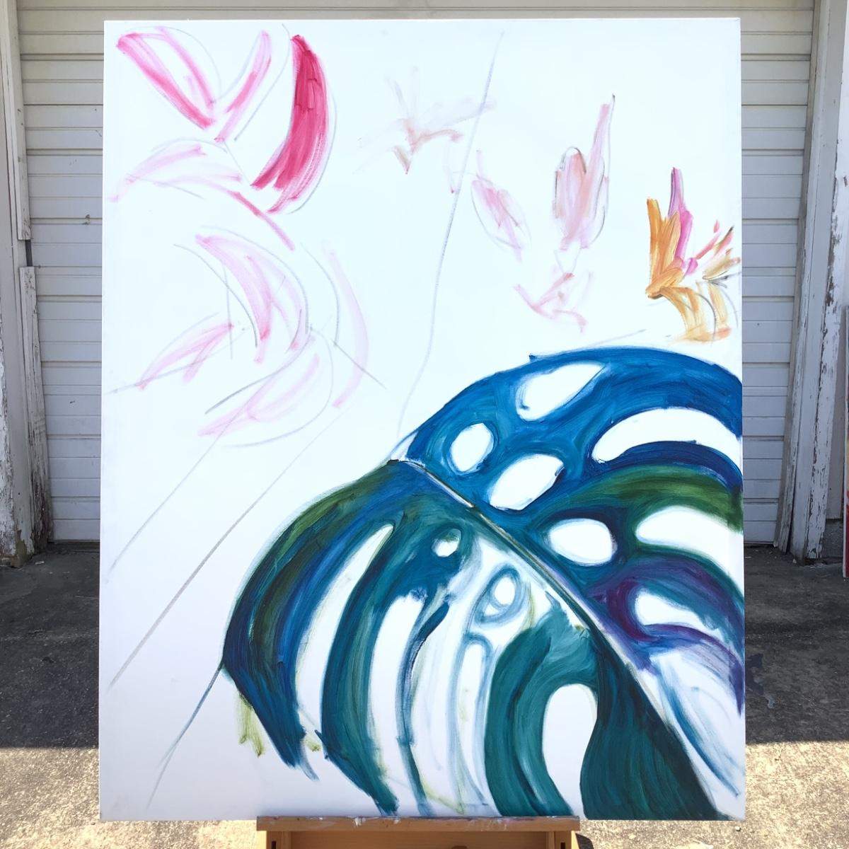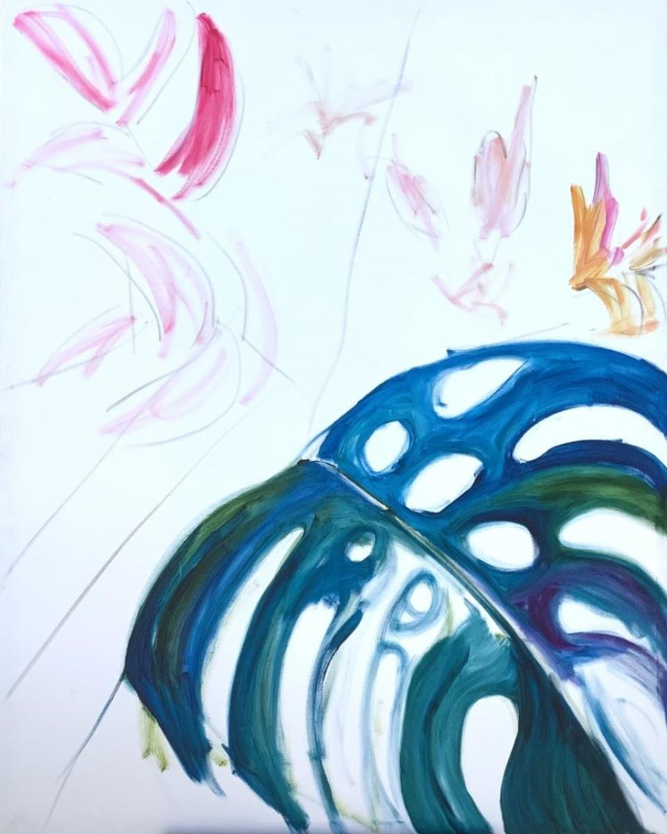 137 Monstera Leaf Oil on Canvas by Ellen Into