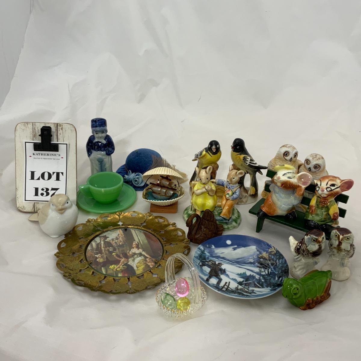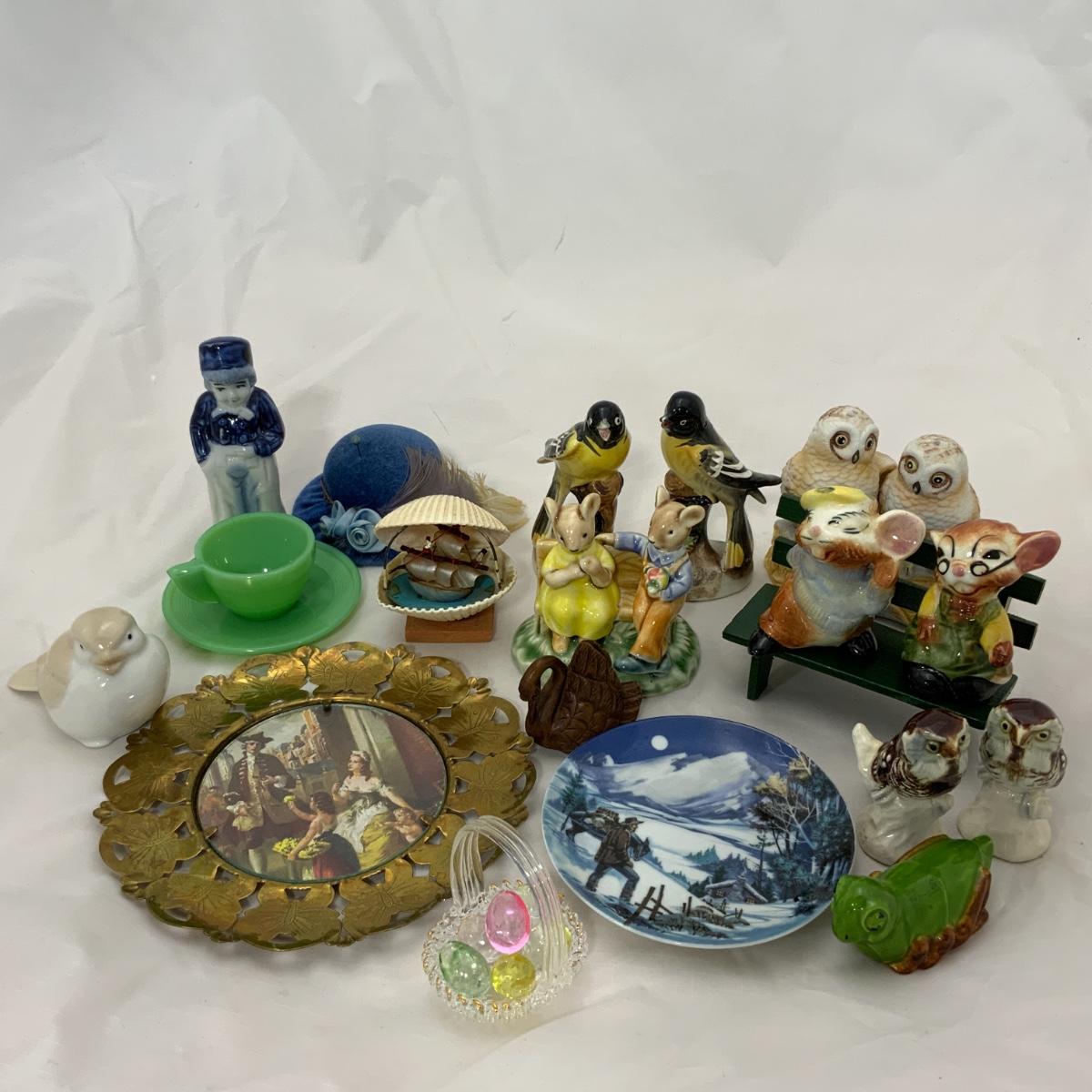 From the Estate of Peter and Alice Radovanovich: Four delicately painted, animal salt and pepper shaker pairs - two small decorative plates, one including fine gold trim - five ornamental miniatures in various shapes and materials - One four inch cobalt child’s figurine - and to top it all off, a ceramic partridge! Unfortunately, it is not in a pear tree. Please see photos for details and condition. ::: Shipping is available on this lot. If you require shipping you must let us know at the close of the auction. We will coordinate with you after the item has been won. Shipping fees will include insurance up to or exceeding the value of all items being mailed. If you have any questions regarding this lot please contact the auctioneer either via this website, by direct email or by phone. PICK UP TIMES and other important information can be found in the TERMS and DESCRIPTION of the auction. Please take a look for pertinent information. Thanks!