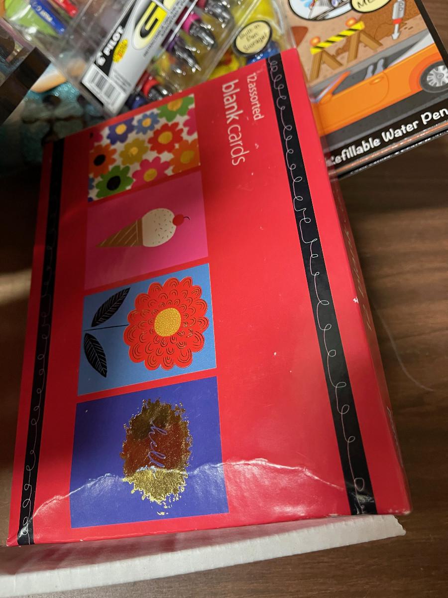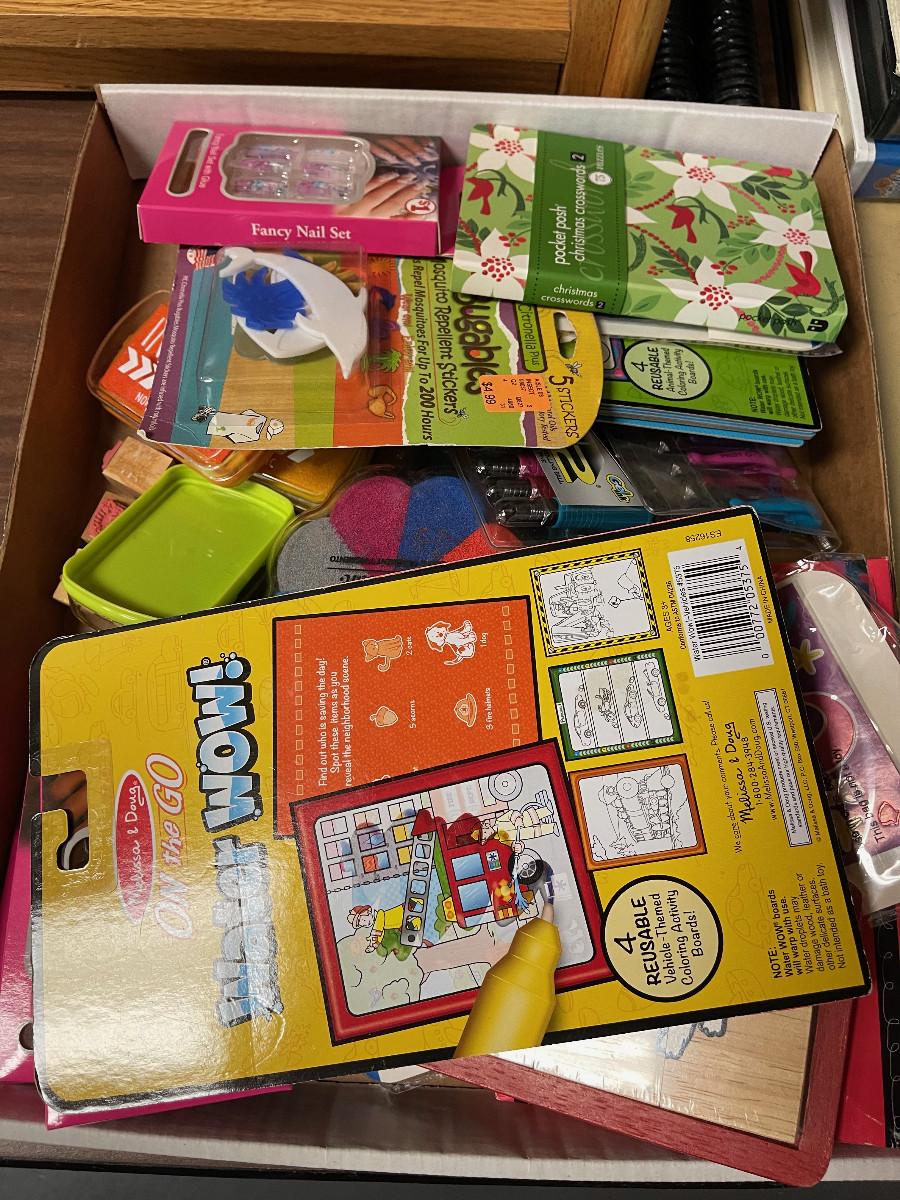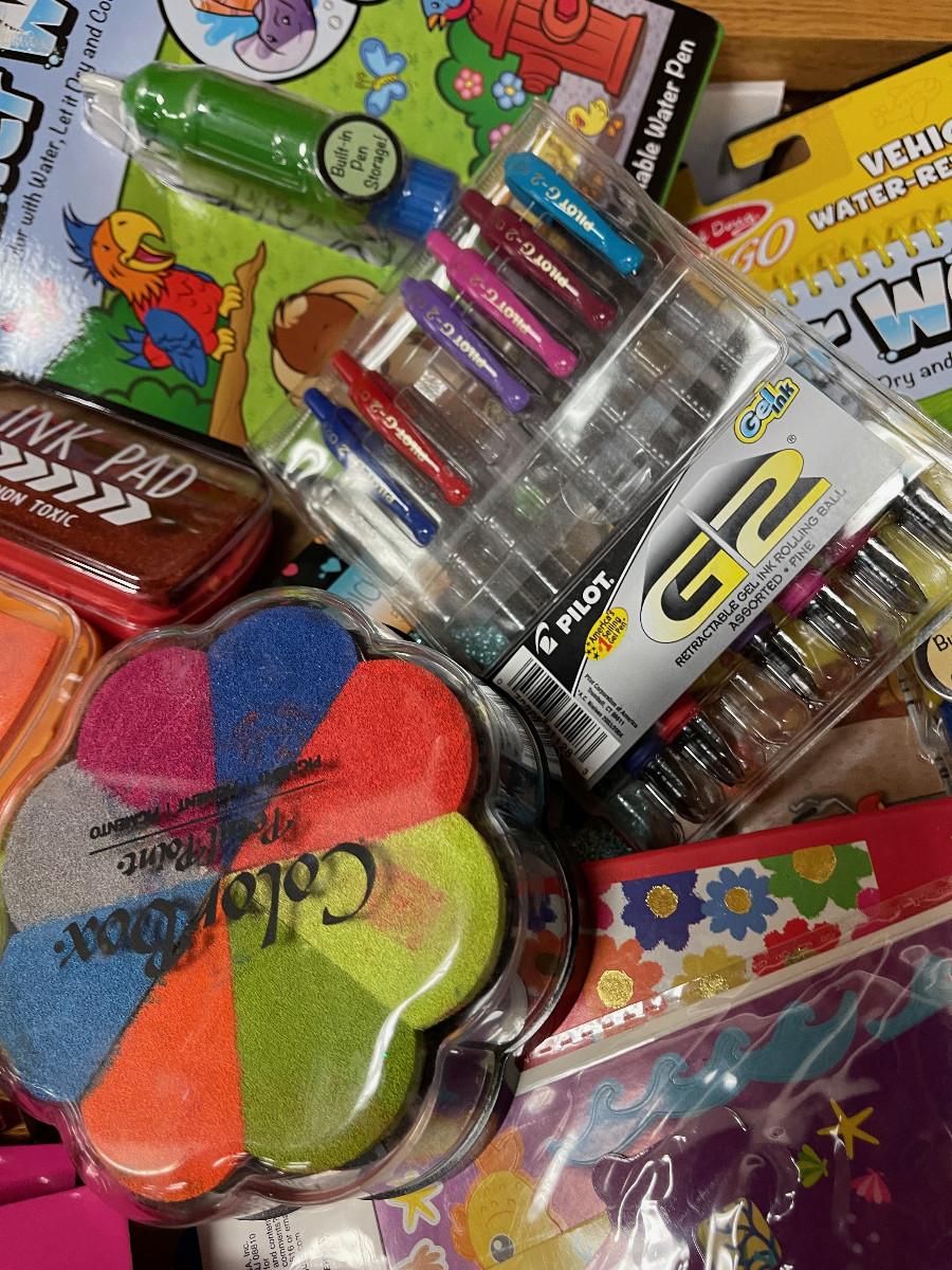 #137 Tray full of Pens, Activities, Stamps, cards etc.